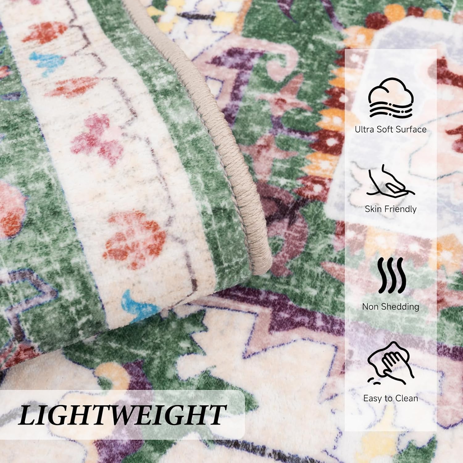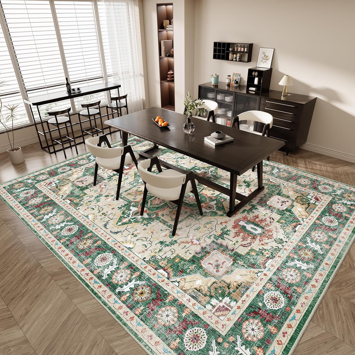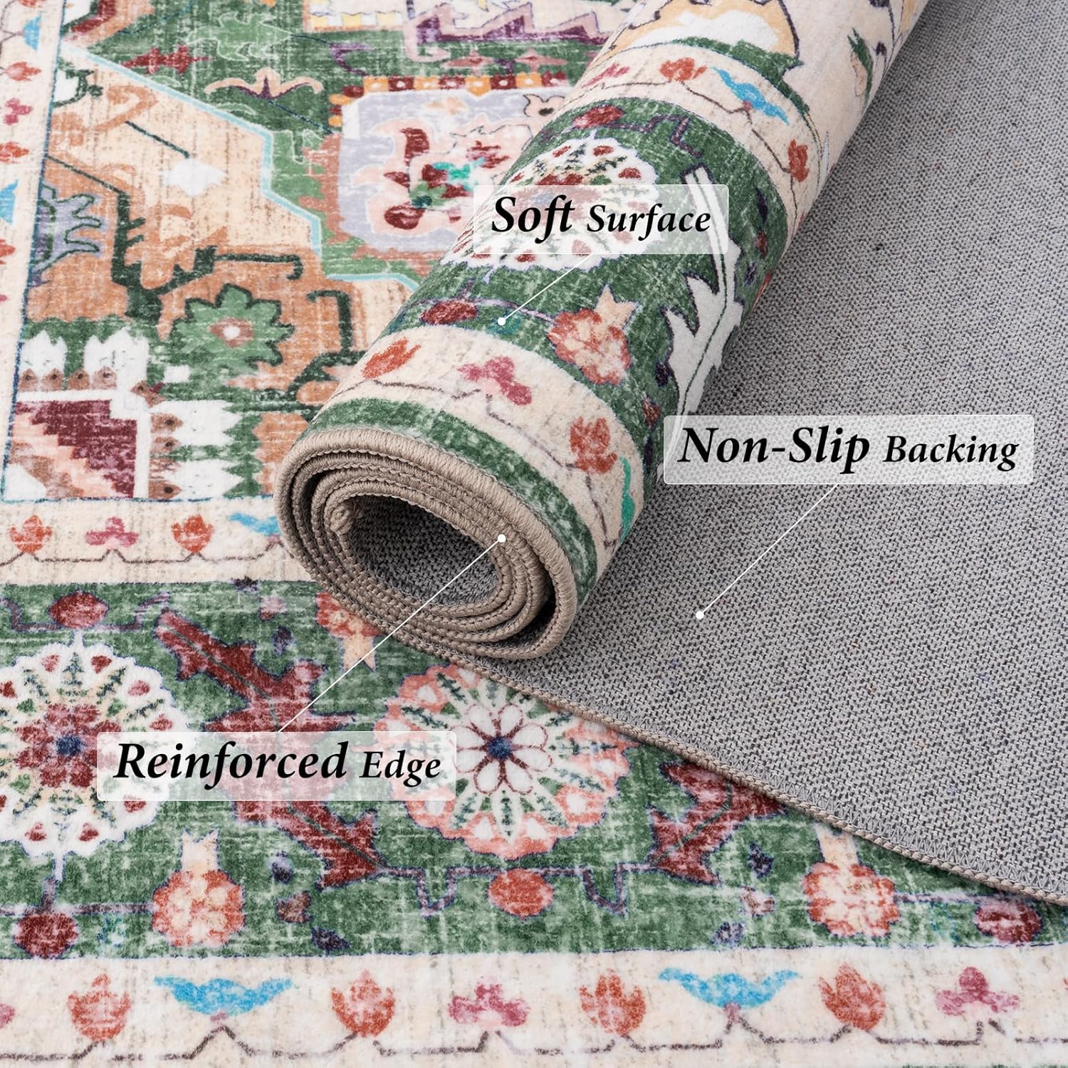 Vamcheer Vintage Washable Rug 8'x10' - Soft Green Large Rugs for Living Room, Bedroom, Dining Room, Home Decor, Machine Washable Area Rugs Non-Slip Non-Shedding