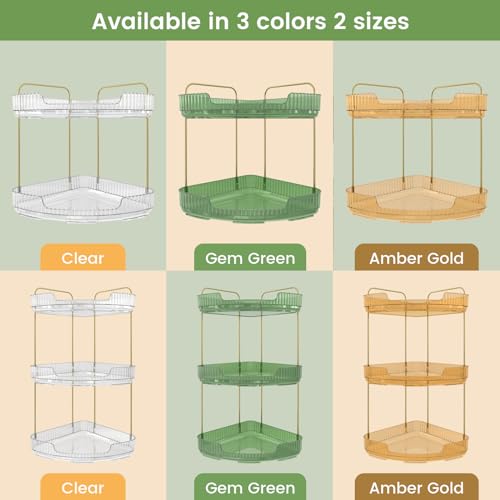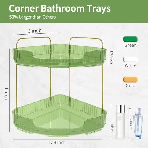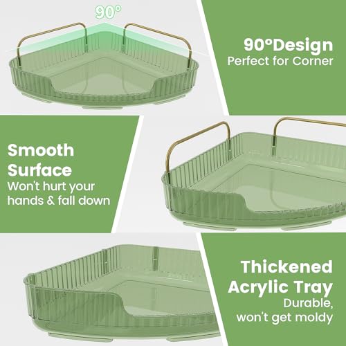 Acrylic Bathroom Tray, 3 Tier Corner Bathroom Organizer Countertop, Makeup Organizer for Vanity Dresser Kitchen, Corner Storage for Skincares Perfume Toiletries- Amber Gold