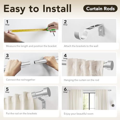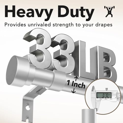 Heavy Duty Curtain Rods for Windows 28 to 48 Inch, 1 Inch Bronze Window Curtain Rod for Bedroom, Living Room, Outdoor, Adjustable Easy Install Curtain Rods, Modern Elegant(A1,Bronze,30"-60")