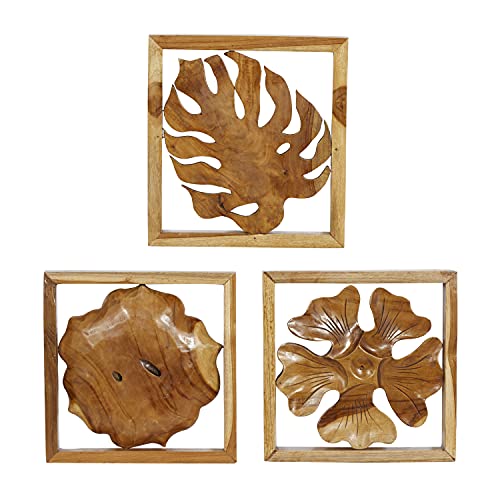 Deco 79 Teak Wood Abstract Handmade Home Wall Decor Live Edge Wood Slab Wall Sculpture, Set of 6 Wall Art 14" W, 16" H, Brown