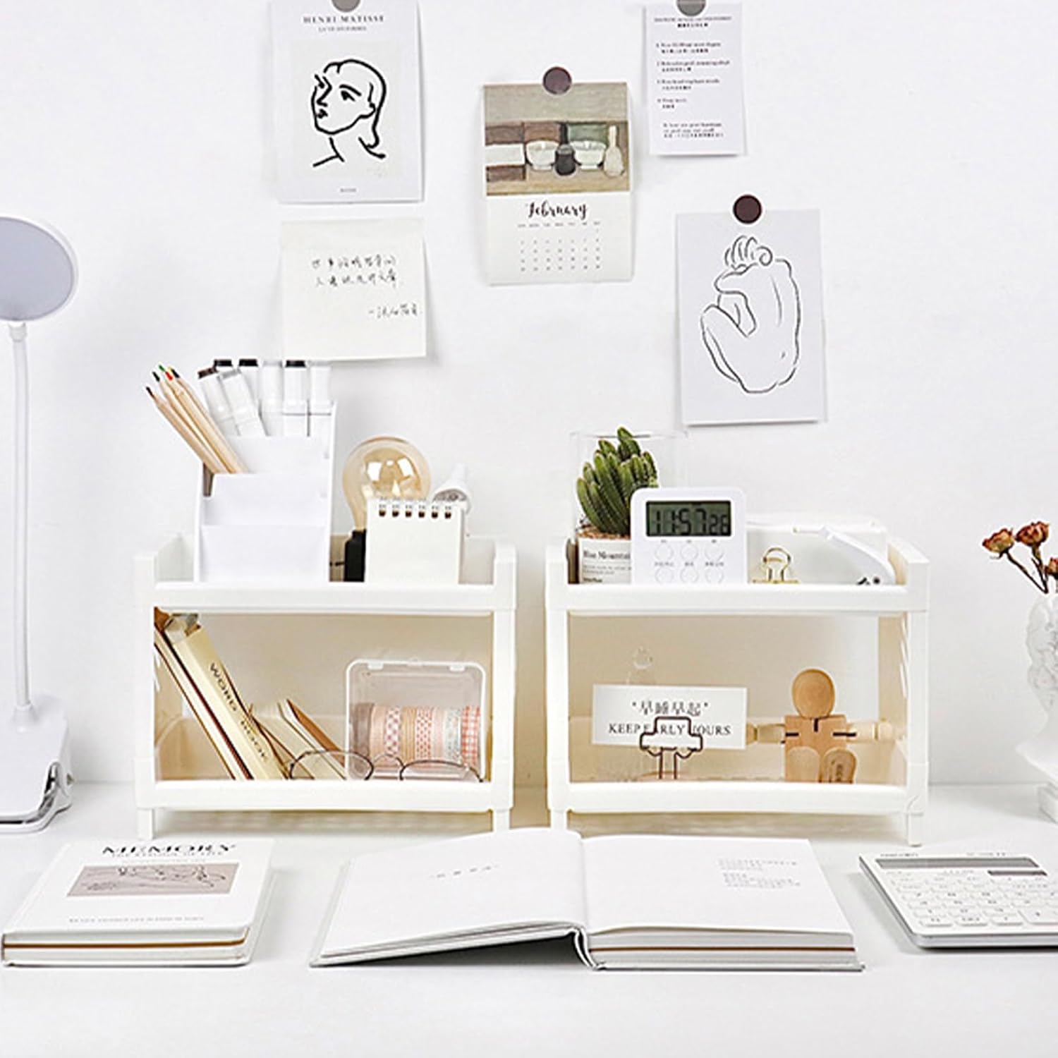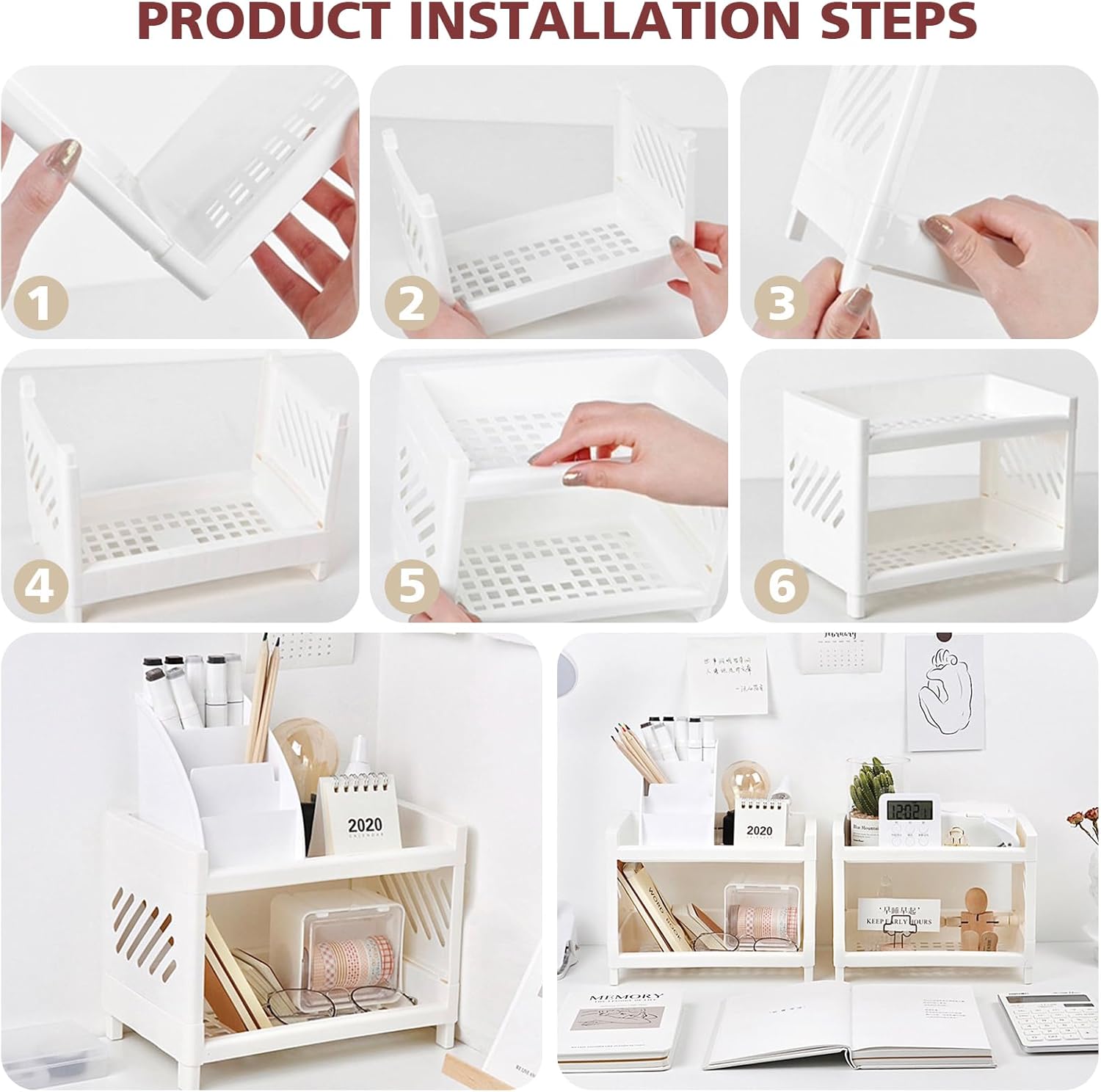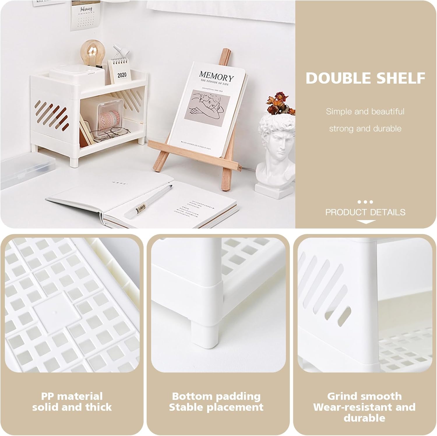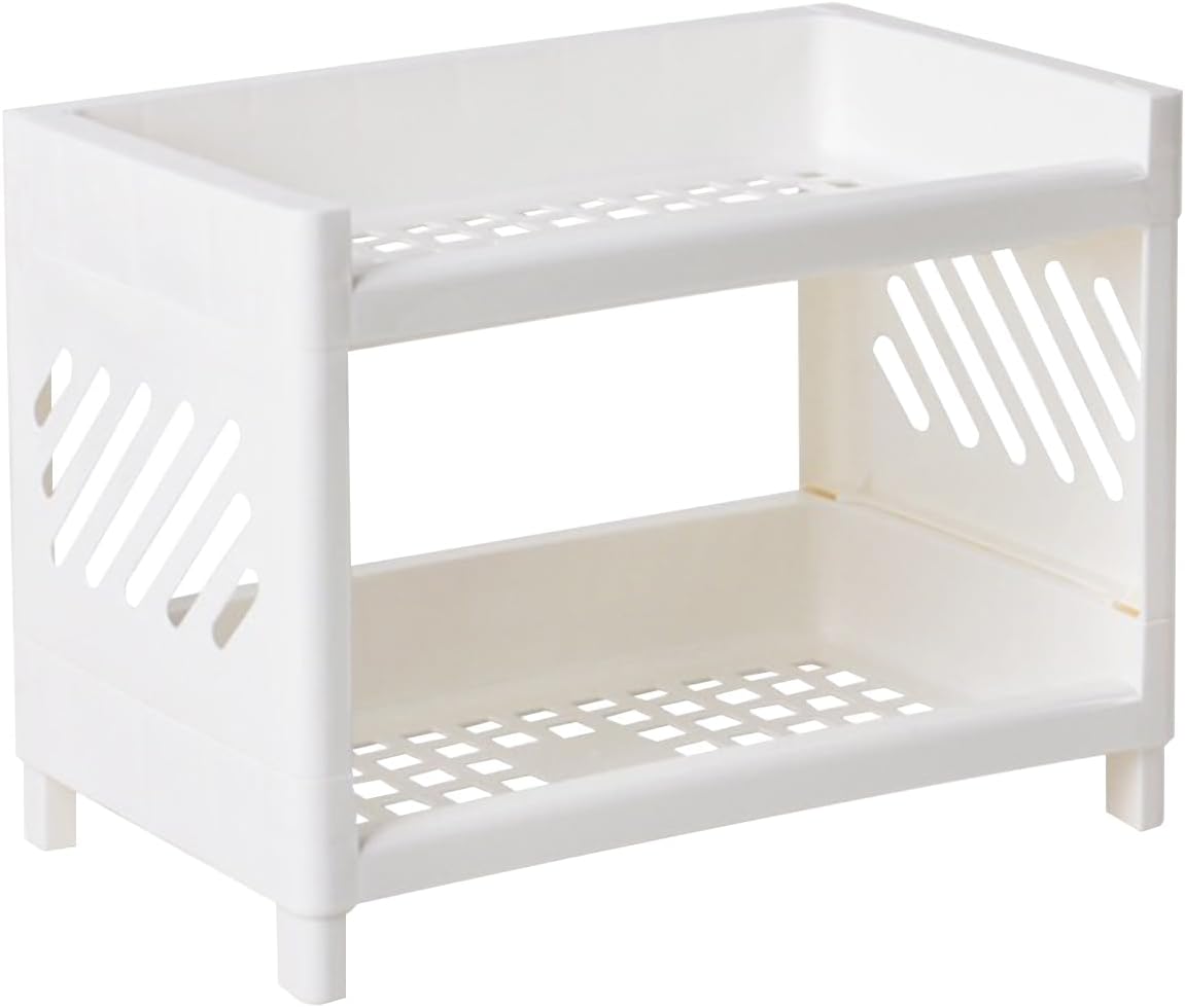 Hoomall White Desktop Organizer with Double Tier,Desk Hutch Dorm for Student/Lady,Office Storage Rack, Organizer for Desk/Bathroom/Office, Desktop Stationary, Easy Assembly, Free Standing Shelf
