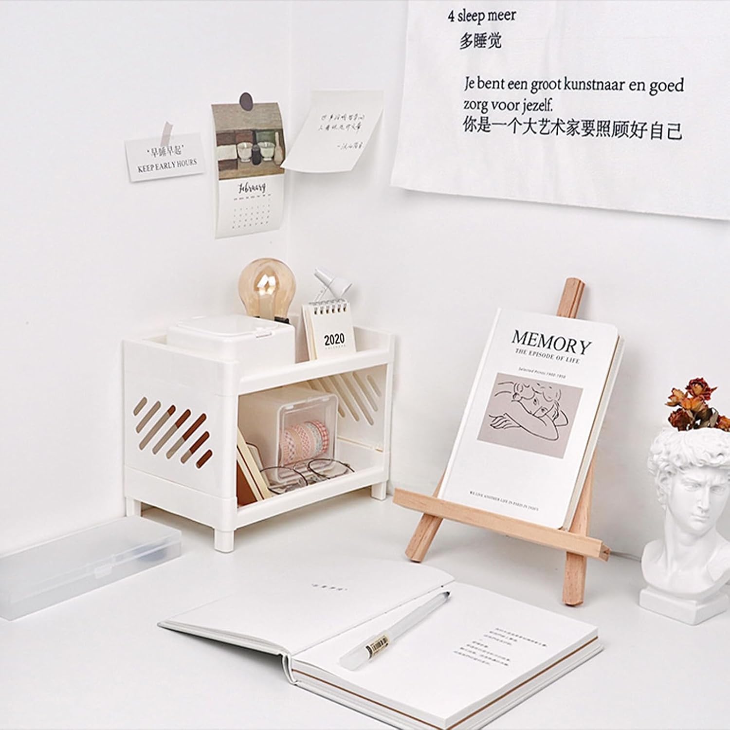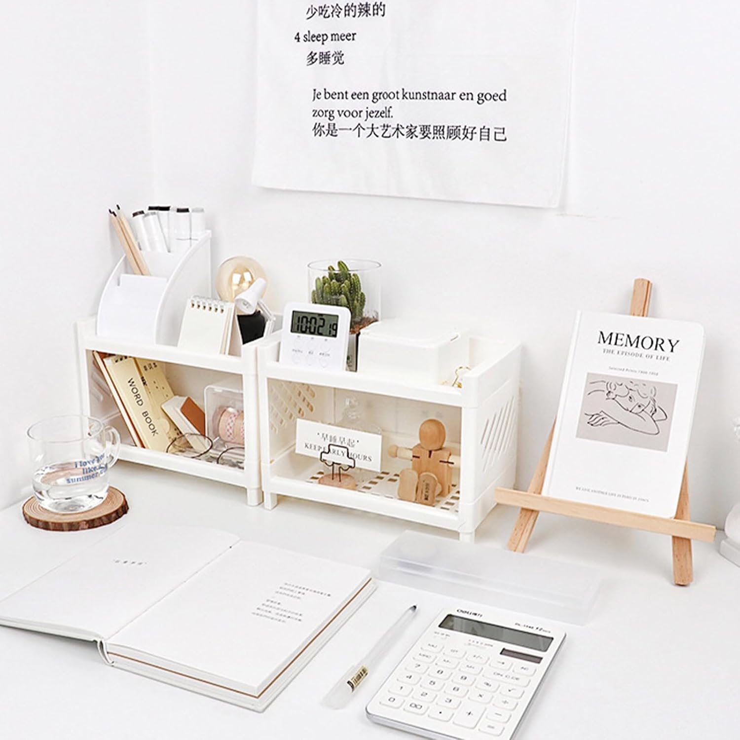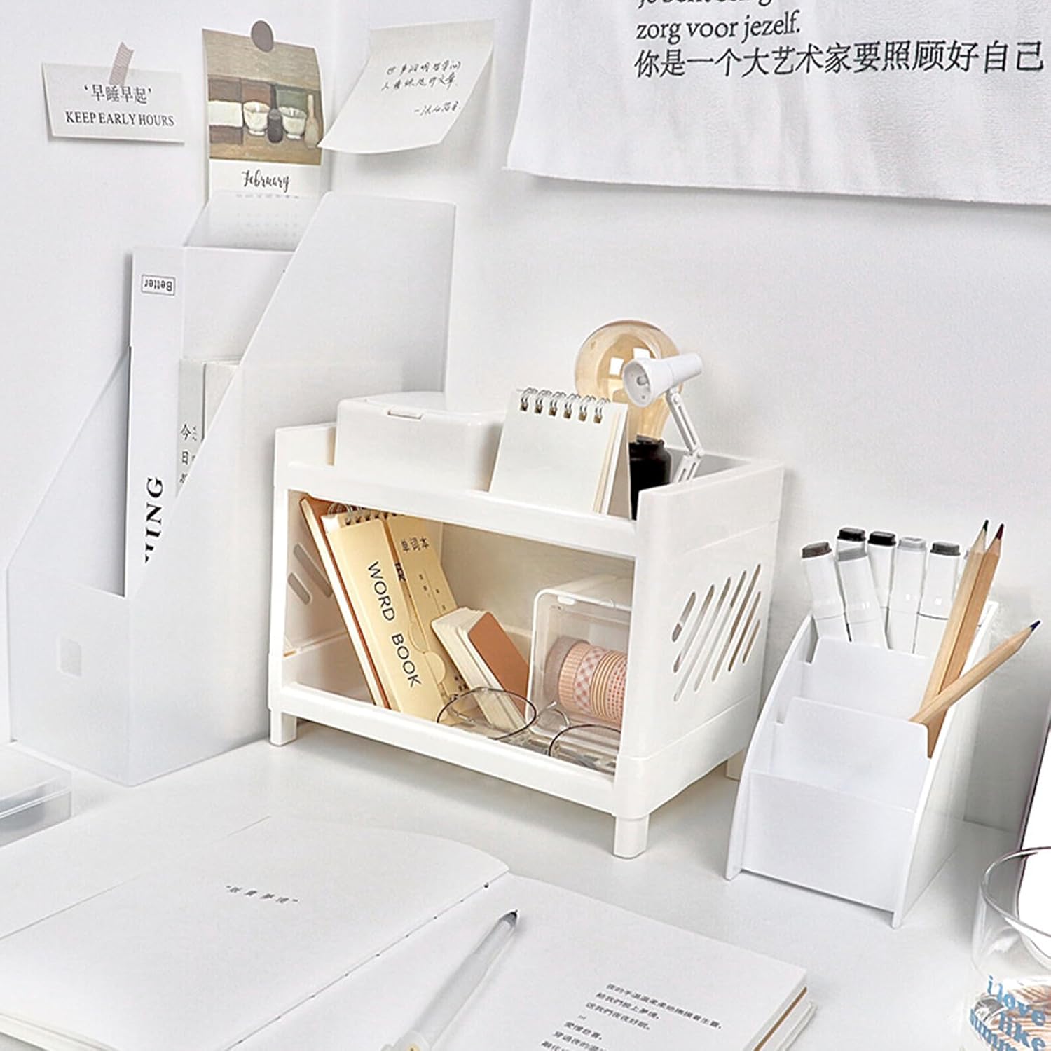 Hoomall White Desktop Organizer with Double Tier,Desk Hutch Dorm for Student/Lady,Office Storage Rack, Organizer for Desk/Bathroom/Office, Desktop Stationary, Easy Assembly, Free Standing Shelf