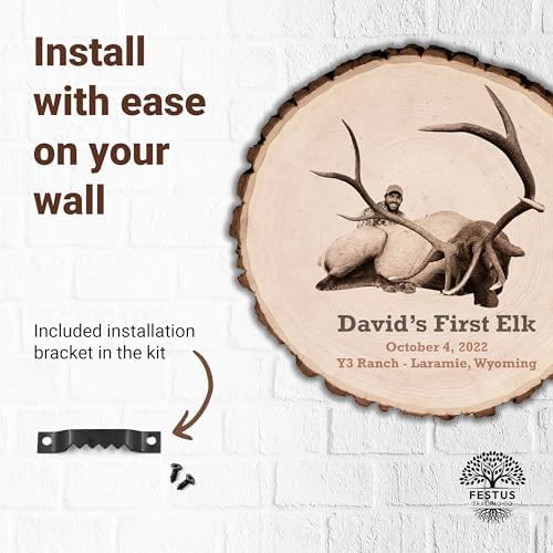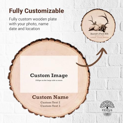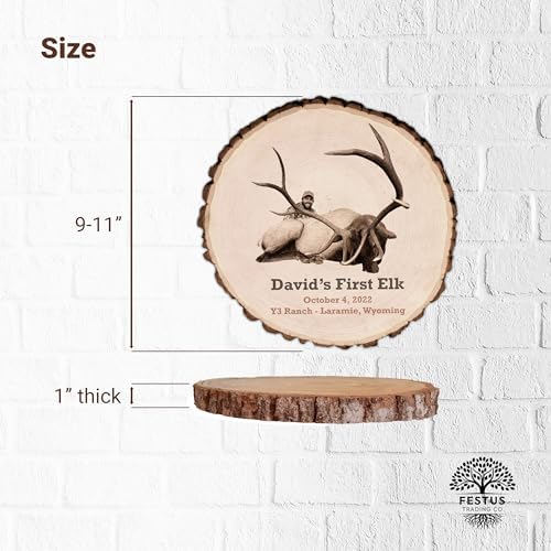 Customized Laser - Engraved Hunting or Fishing Memories on Live Edge Wood Round, Custom Picture Frame, Personalized Photo Frame, Customizable Wooden Frame, Custom Made Plate