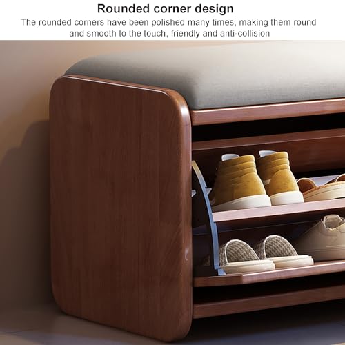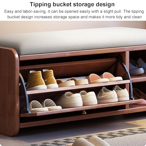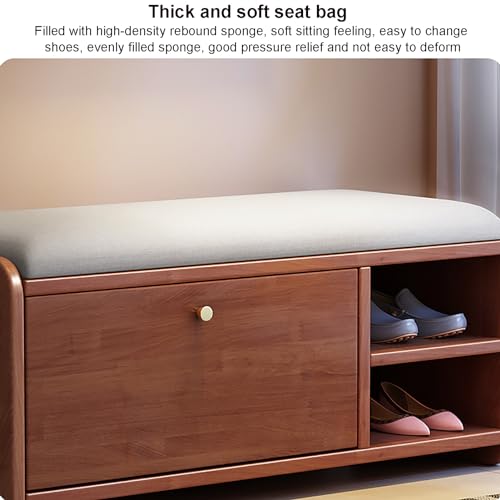 Shoe Storage Bench for Entryway, Solid Wood Hidden Shoe Organizer with Flip Drawer, Freestanding Shoe Rack Bench with Padded Seat for Closet, Hallway, Mumroom(100x30x45cm(39x12x18in), White)