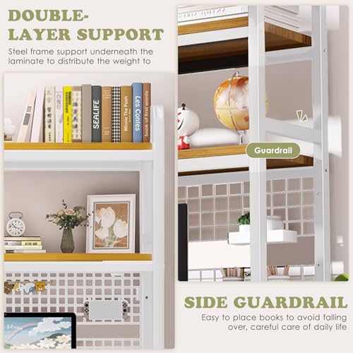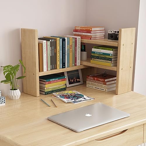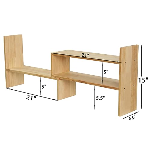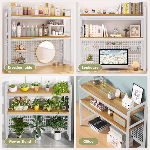 Desktop Shelf Desk Hutch Desktop Shelves Cubicle Shelf Adjustable Rubber Wood Small Bookshelf Office Supplies Desk Organizer and Accessories Display Rack(White)