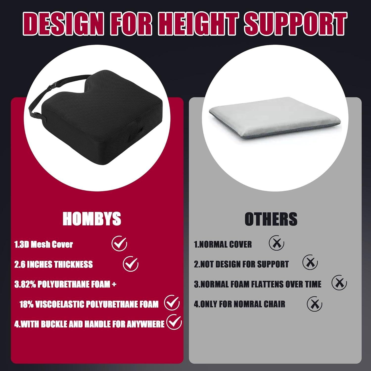 HOMBYS Extra Thick 6 in Office Seat Cushion, Memory Foam Adult Booster Seat for Car,Car Seat Cushion to Raise Seat Height,Seat Cushion Relieving Back Pain for Long Sitting Office