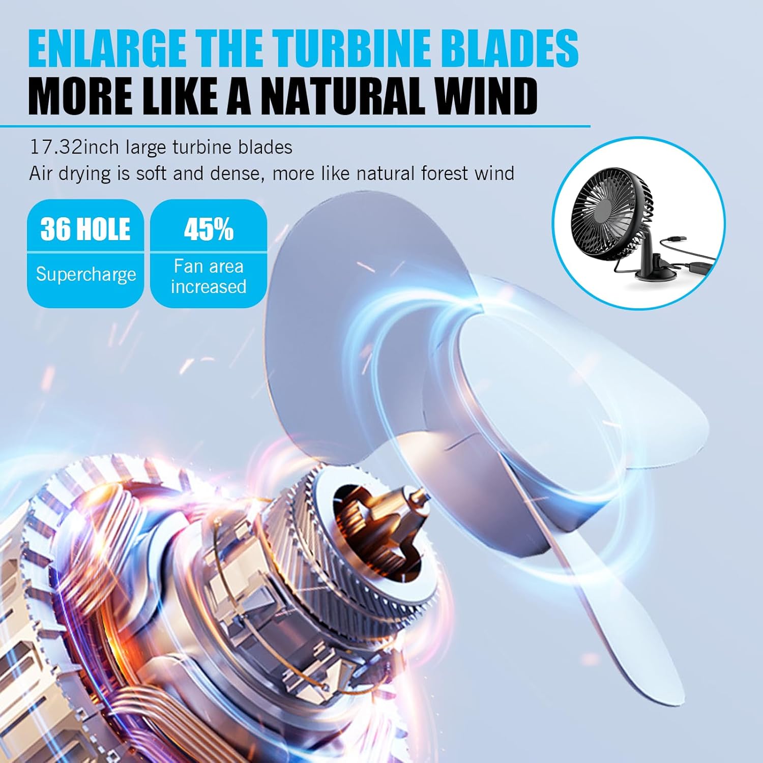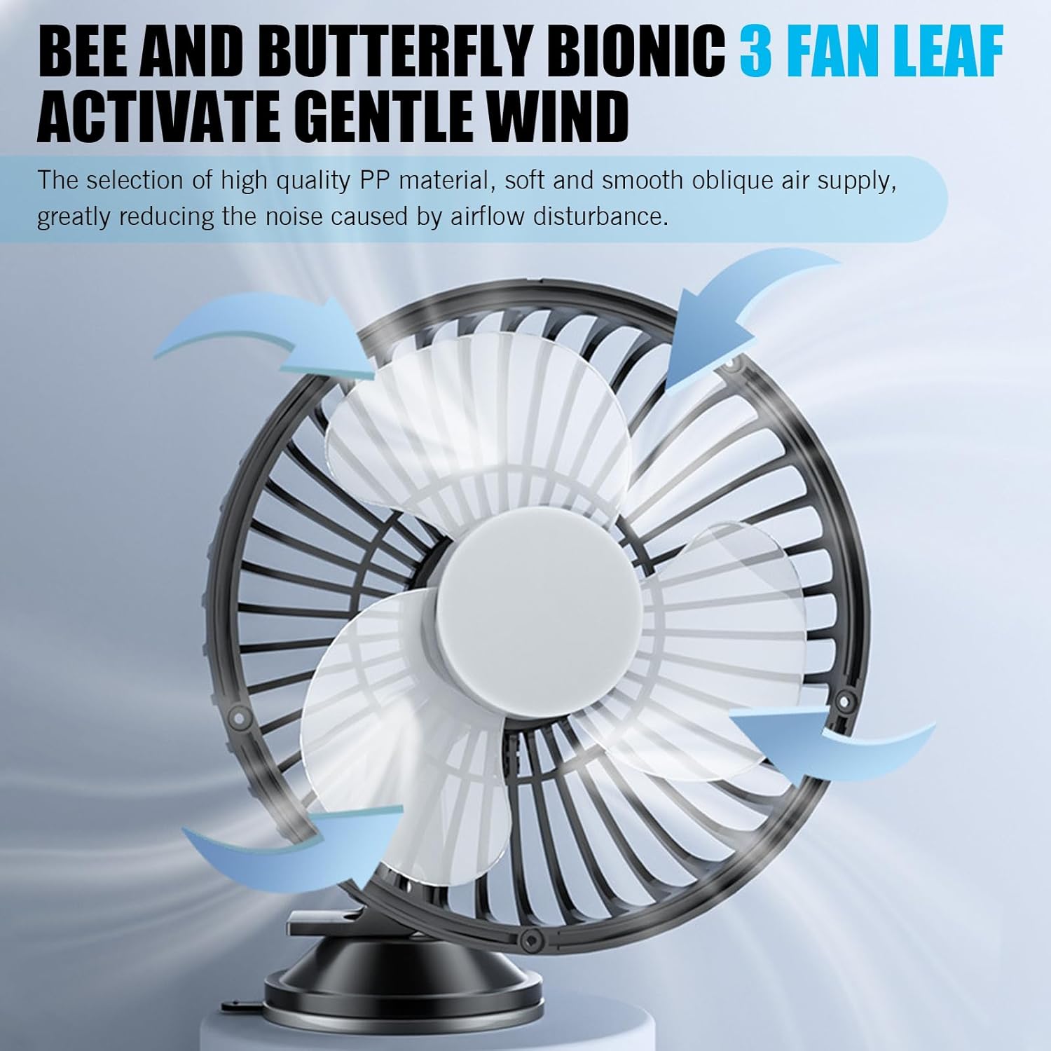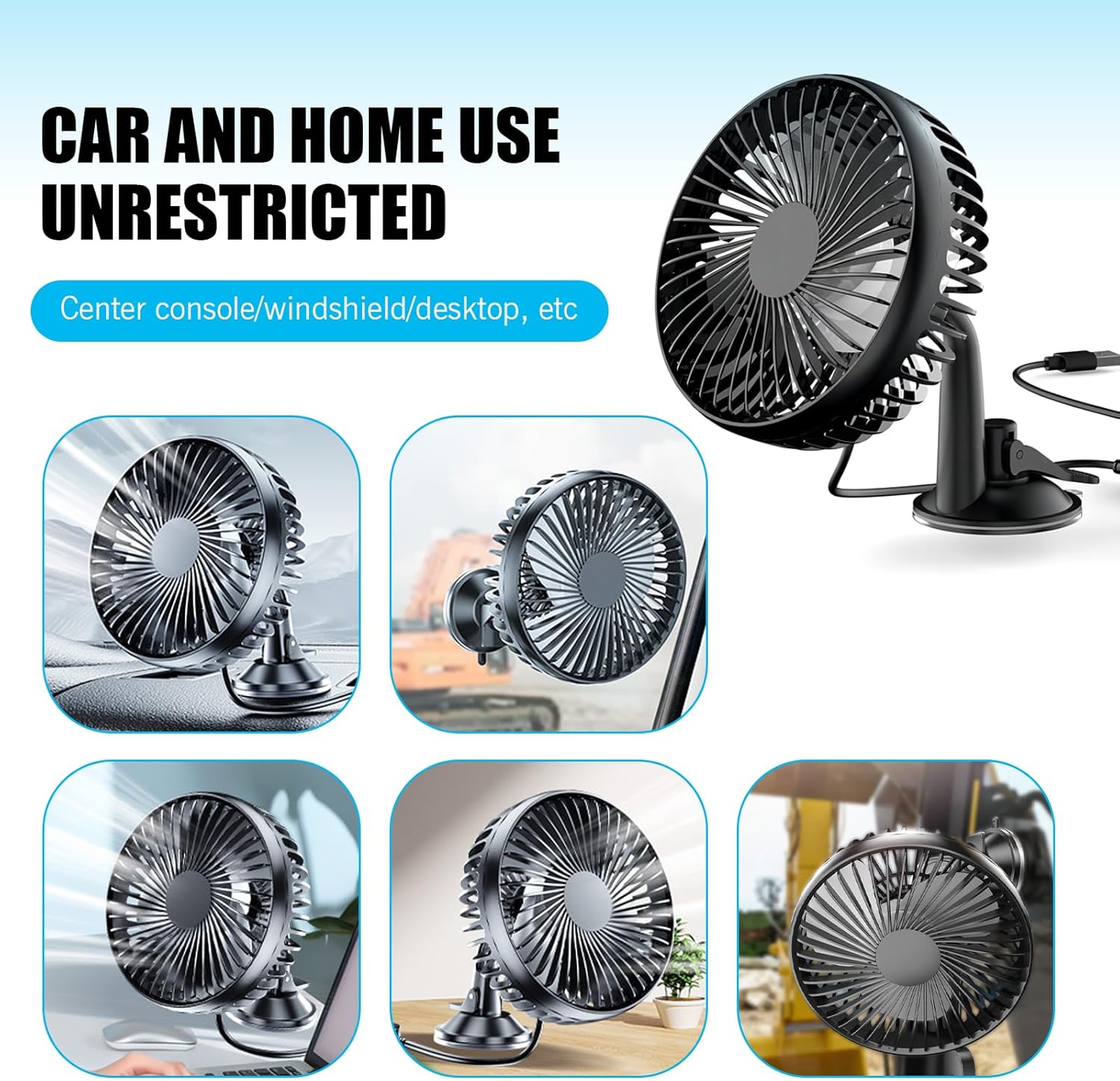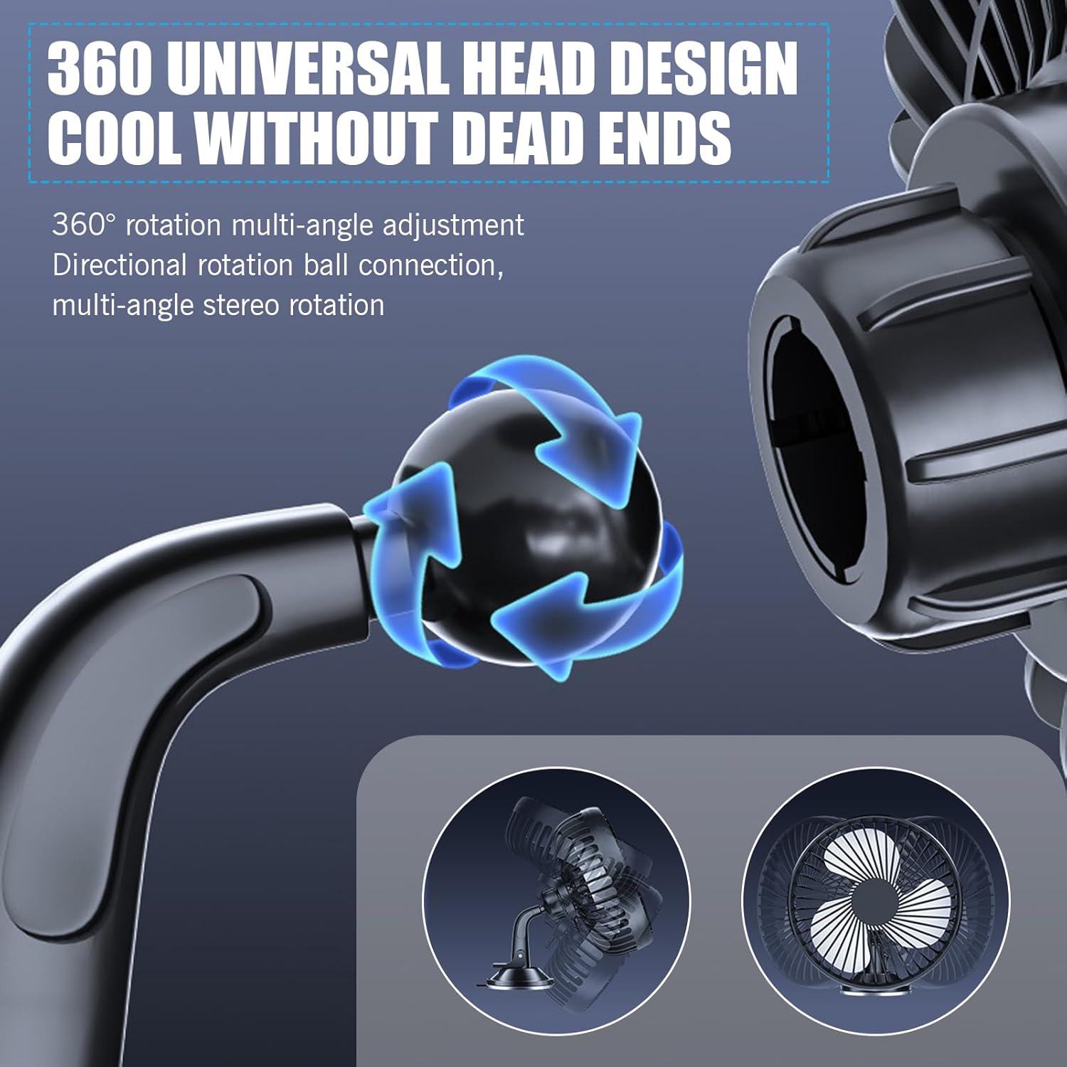 1 PC Car Single-head Fan, 360 Degree Wide-angle Strong Wind Silent Fan with USB Port, Multi-function Dashboard Windshield Fan with Washable Suction Cup, Universal for Cars Office (Black)