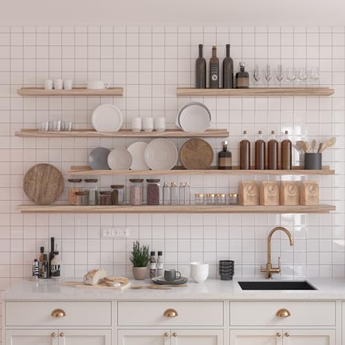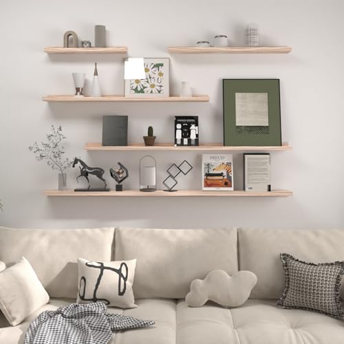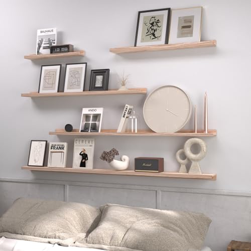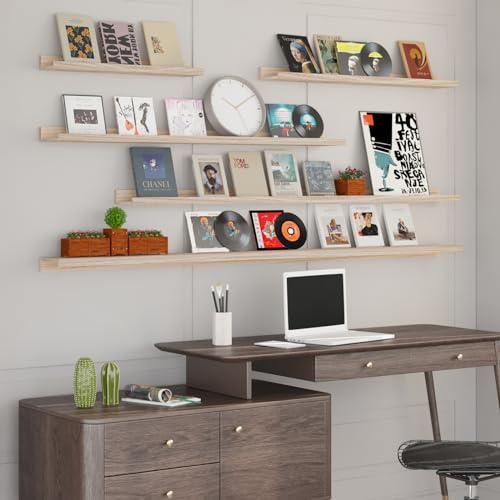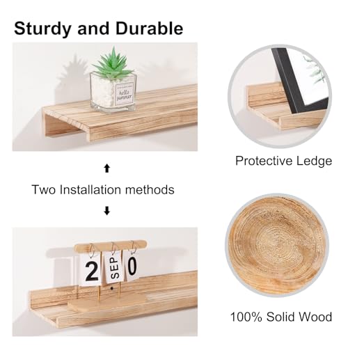 SAUMONIERES Picture Ledge Shelf Floating Book Shelves Wall Mounted Solid Wood for Bedroom Living Room Kitchen, Rustic Grey, 72 Inch Set of 2