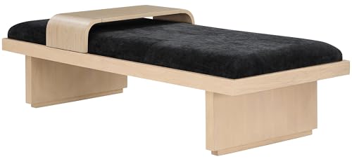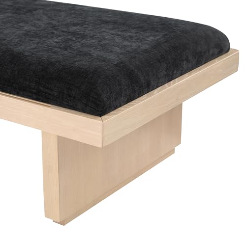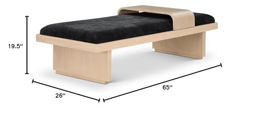 Meridian Furniture Arlington Collection Mid-Century Modern Bench with Soft Chenille Fabric, Rich Finish, Solid Wood, Sliding Wooden Tray, 65" W x 26" D x 19.5" H, Black/Natural