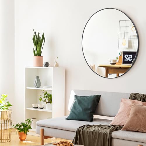 ZenStyle Black Circle Wall Mirror Round Wall Mirror with Metal Frame for Entryways, Bathrooms, Living Rooms, Wall Decor, Farmhouse, Makeup Vanity (1, 36 inch)