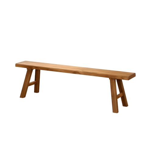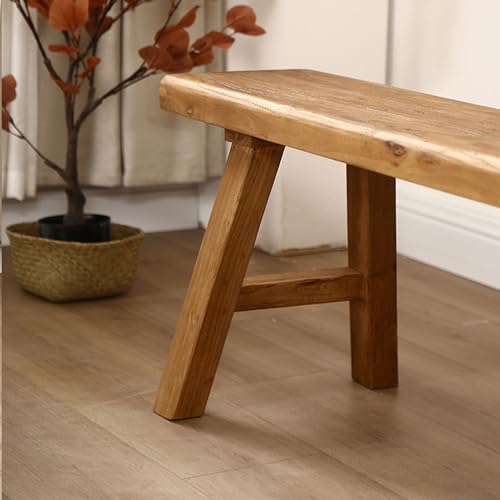 Natural Wood Asian Entryway Bench with Armless Design and Short Height, Farmhouse Wooden Indoor Kitchen Dining Bench, Solid Wood Shoe Bench Entryway Benches 55" L x 10" W x 18" H