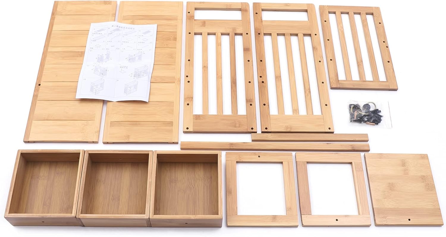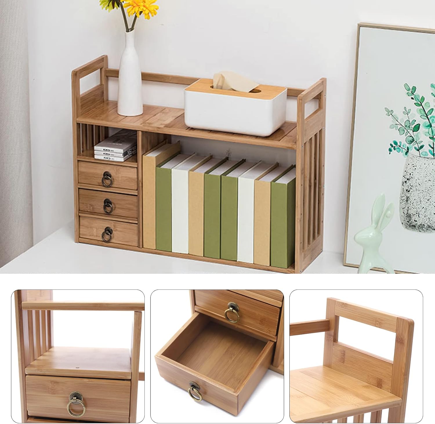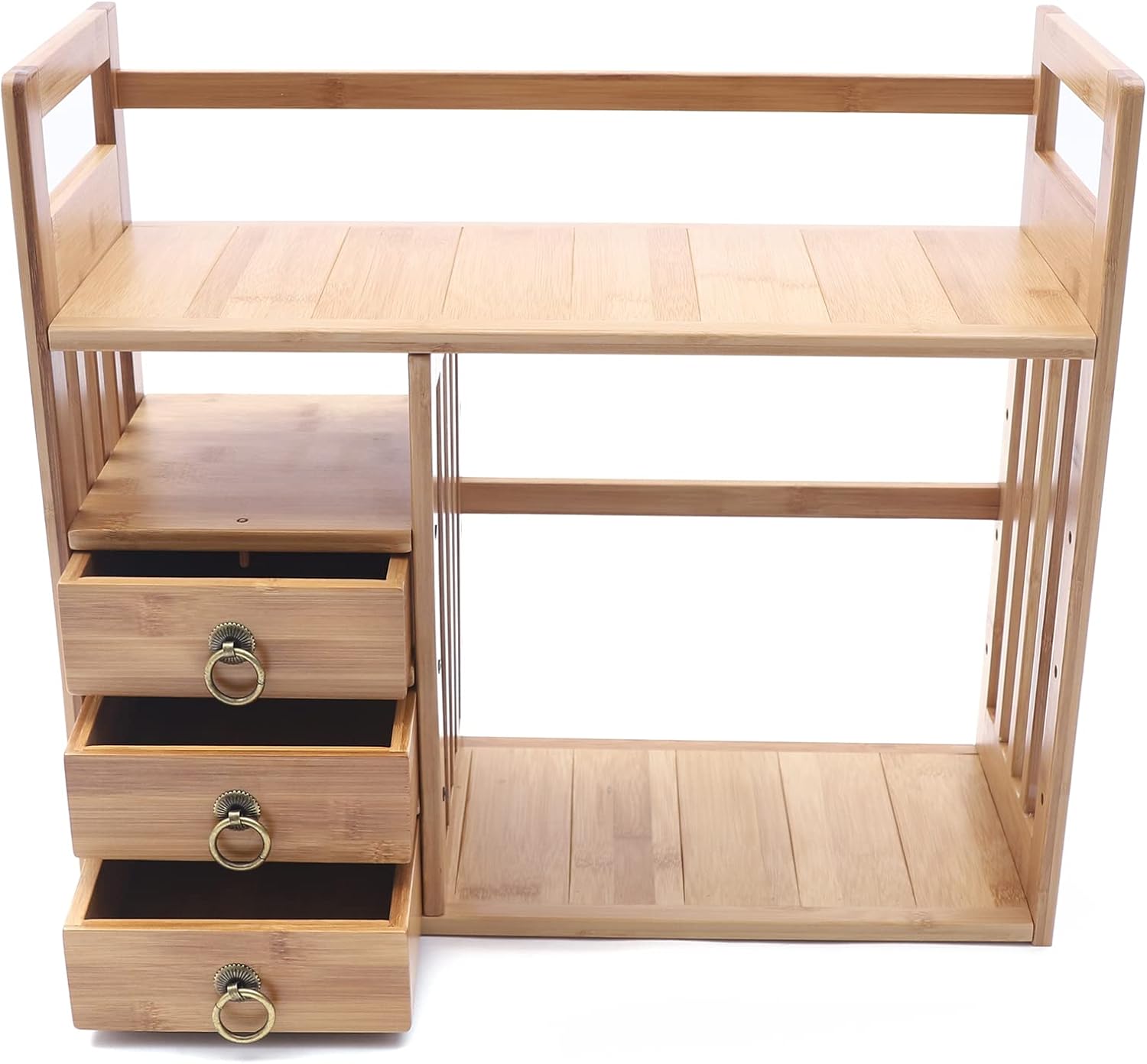Desktop Shelves & Office Shelves Desk Hutch Top Only Bamboo Desktop Bookshelf Counter Top Bookcase Adjustable with 2 Drawers, Desk Storage Organizer Display Shelf Rack for Office Supplies