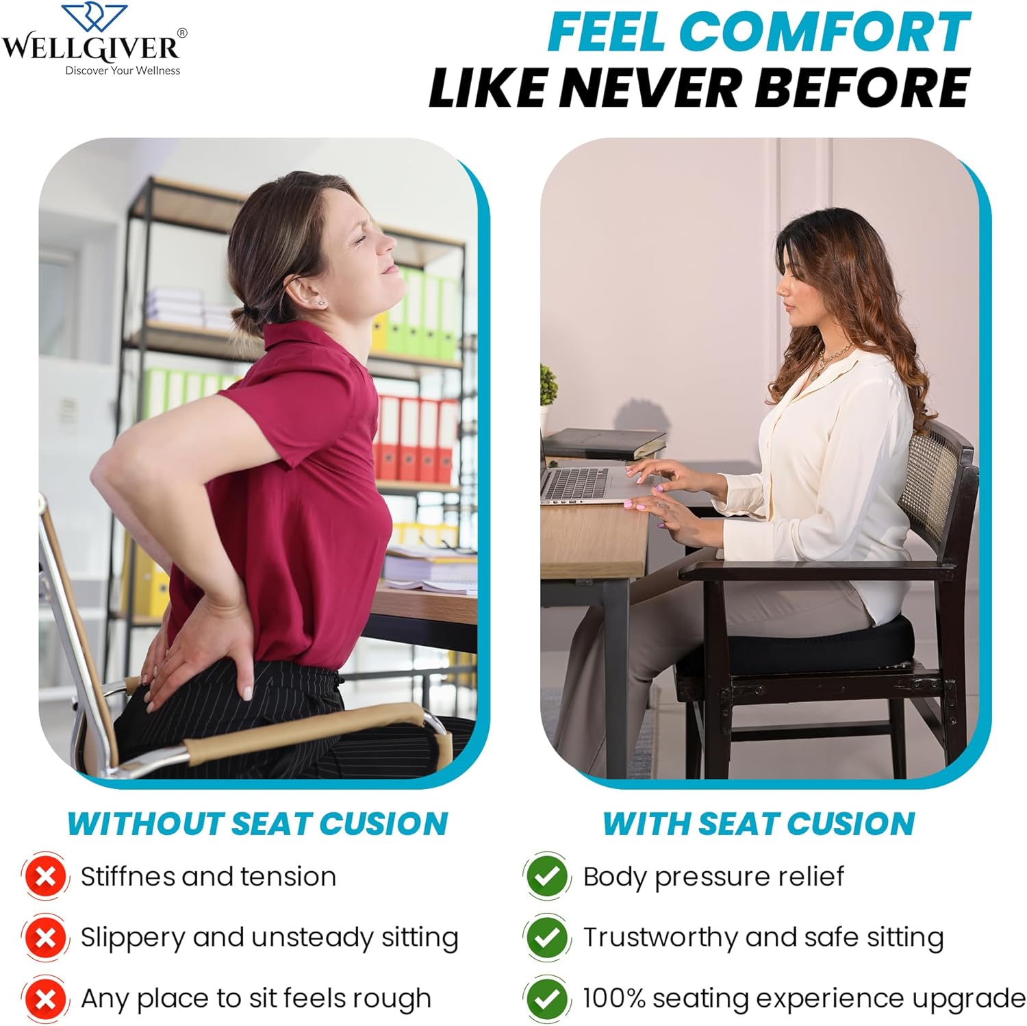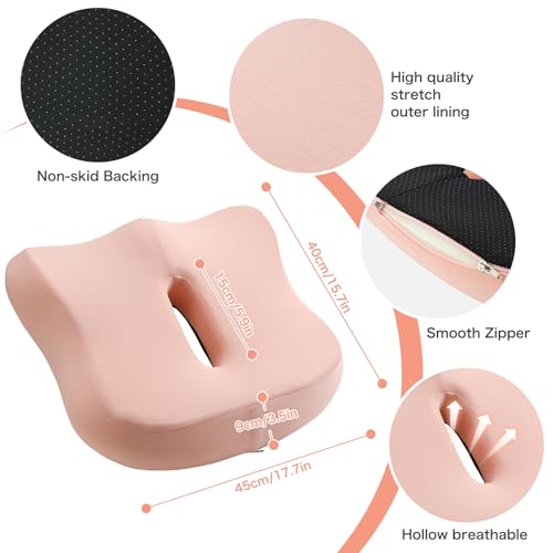Fashionable women's cushion17.7 * 15.7 * 3.5inches, ergonomic, good support performance, suitable for sedentary office crowd,Memory Foam Cushion for Office/Home Chair/Car Seat (pink)