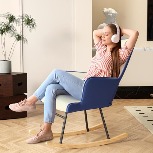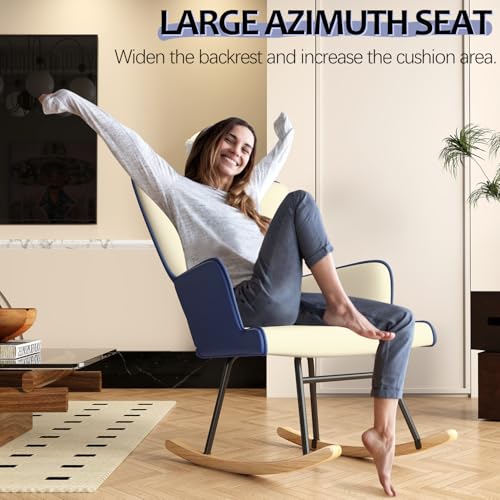 Glider Rocking Chair Nursery Comfy Accent Chair with High Back Faux Leather Living Room Chairs Color Button Tufted Armchair Reading Chair for Bedroom Nursery Office, Cream+Berry Blue