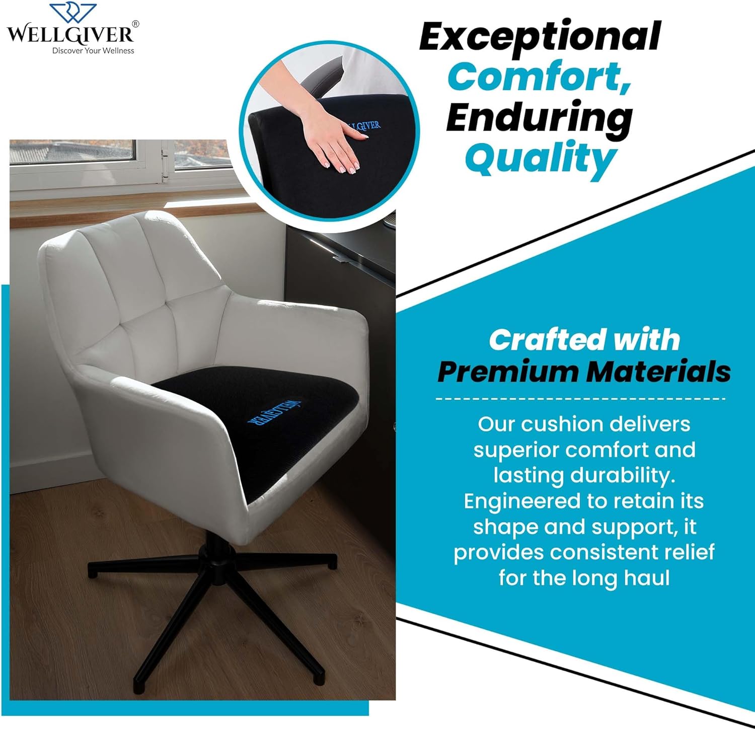 Extra Large Memory Foam Seat Cushion for Office Chair, Recliner, Wheelchair & Meditation, Coccyx Cushion for Tailbon, Floor Pillow with Breathable & Washable Cover & Carry Handle