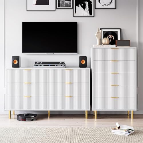 White Dresser, Modern 3 Drawer Dresser for Bedroom with Gold Handle and Large Drawer, Wood Double Chest of Drawers and Storage Organizer for Living Room, Hallway, Entryway