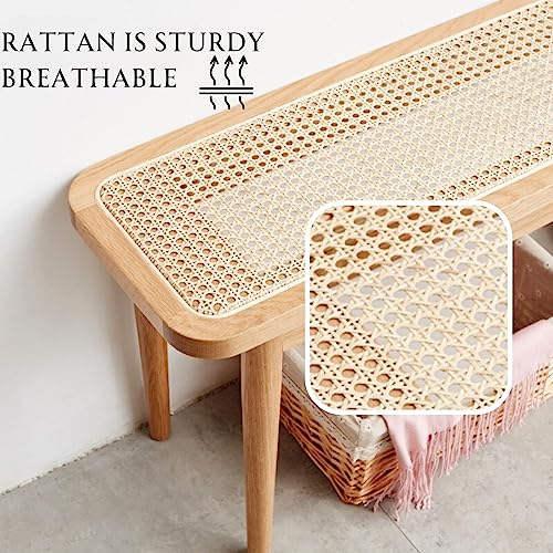 Solid Oak Wood Bench with Rattan Detail - Sturdy and Versatile Seating for Any Space