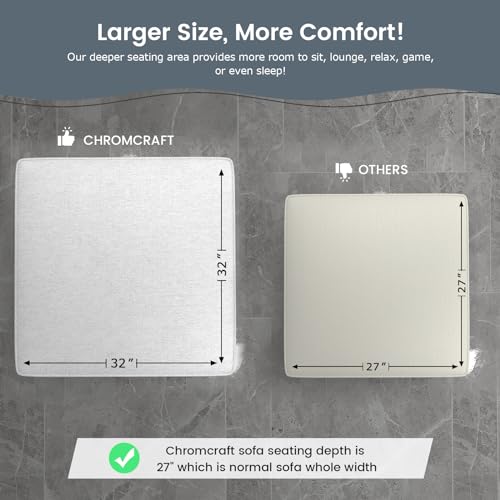 Chromcraft Large Sectional Modular Couch 32" Deeper Seat Sofa Couch Convertible Modern Comfy Sectional Chaise Sleeper Sofa for Living Room