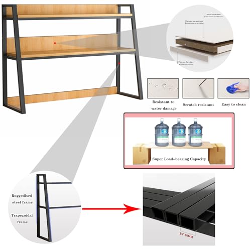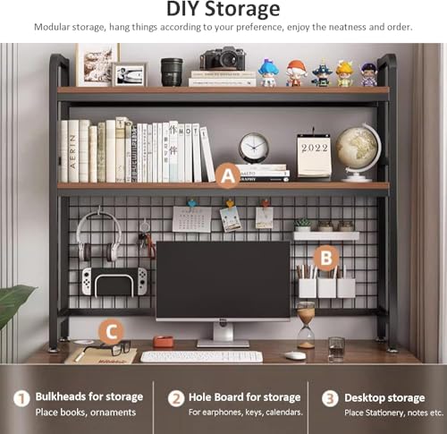 Computer Desktop Bookcase 2-Tier Multipurpose Metal and Wood Desk Hutch Bookshelf for Computer with Partitions Shelf Display Rack Desk Organizer for Office Home Dormitory,Black b,75×32×90CM