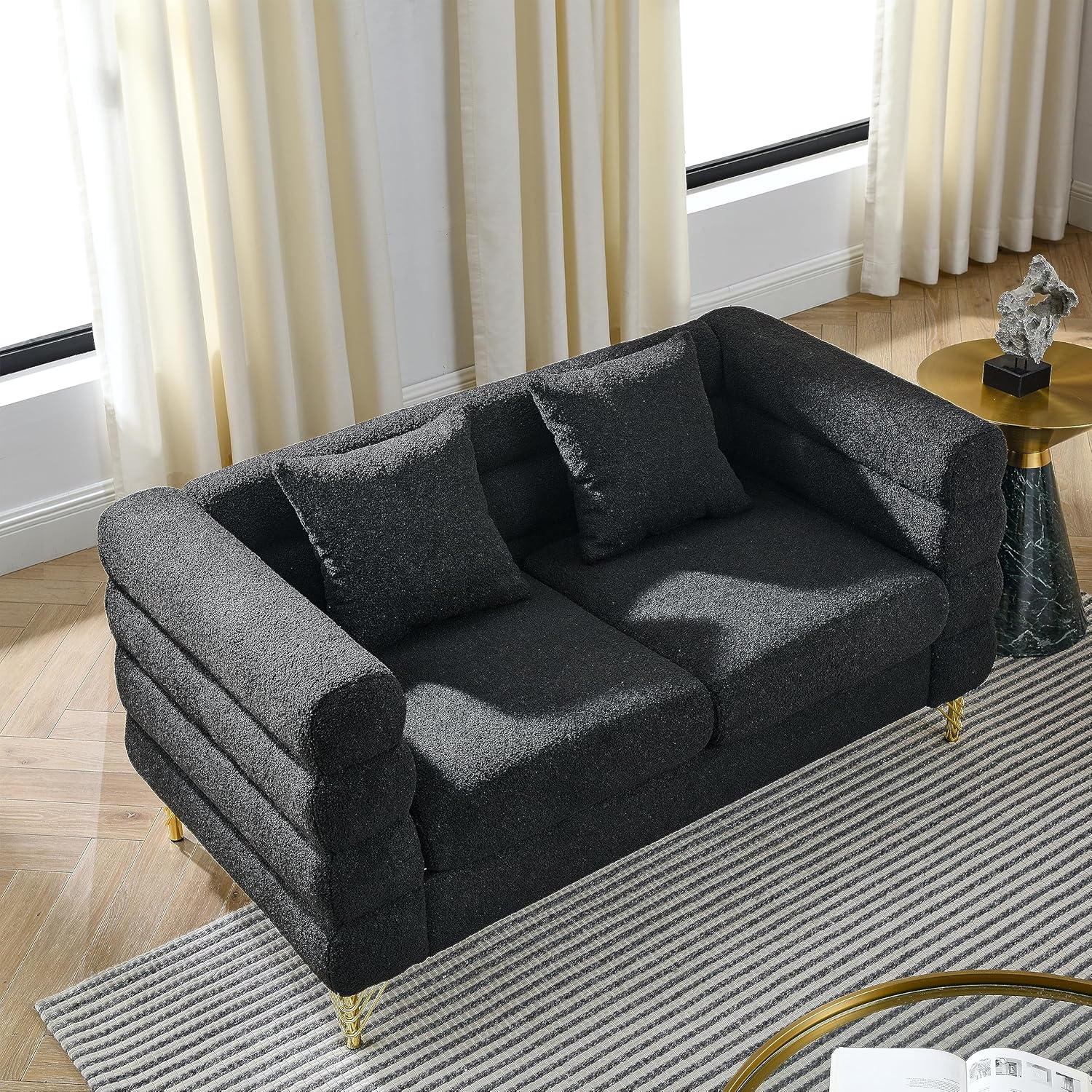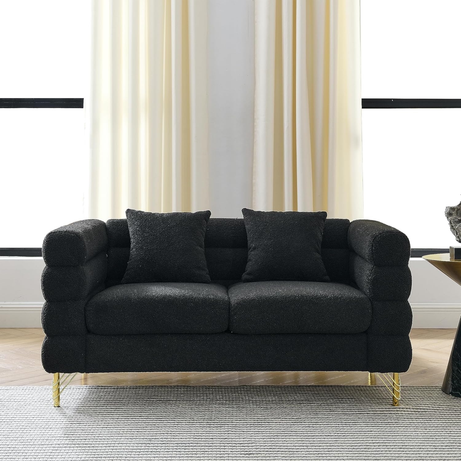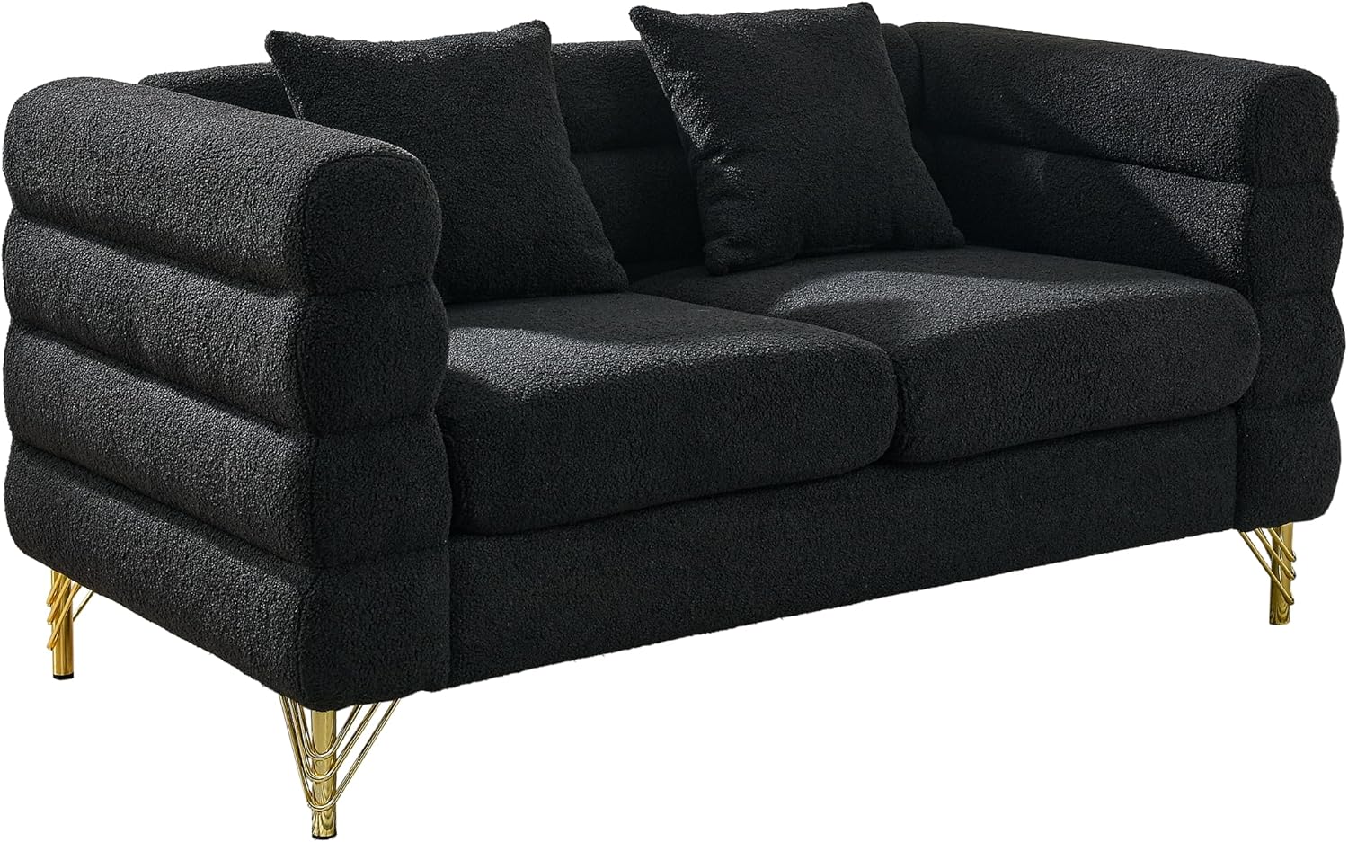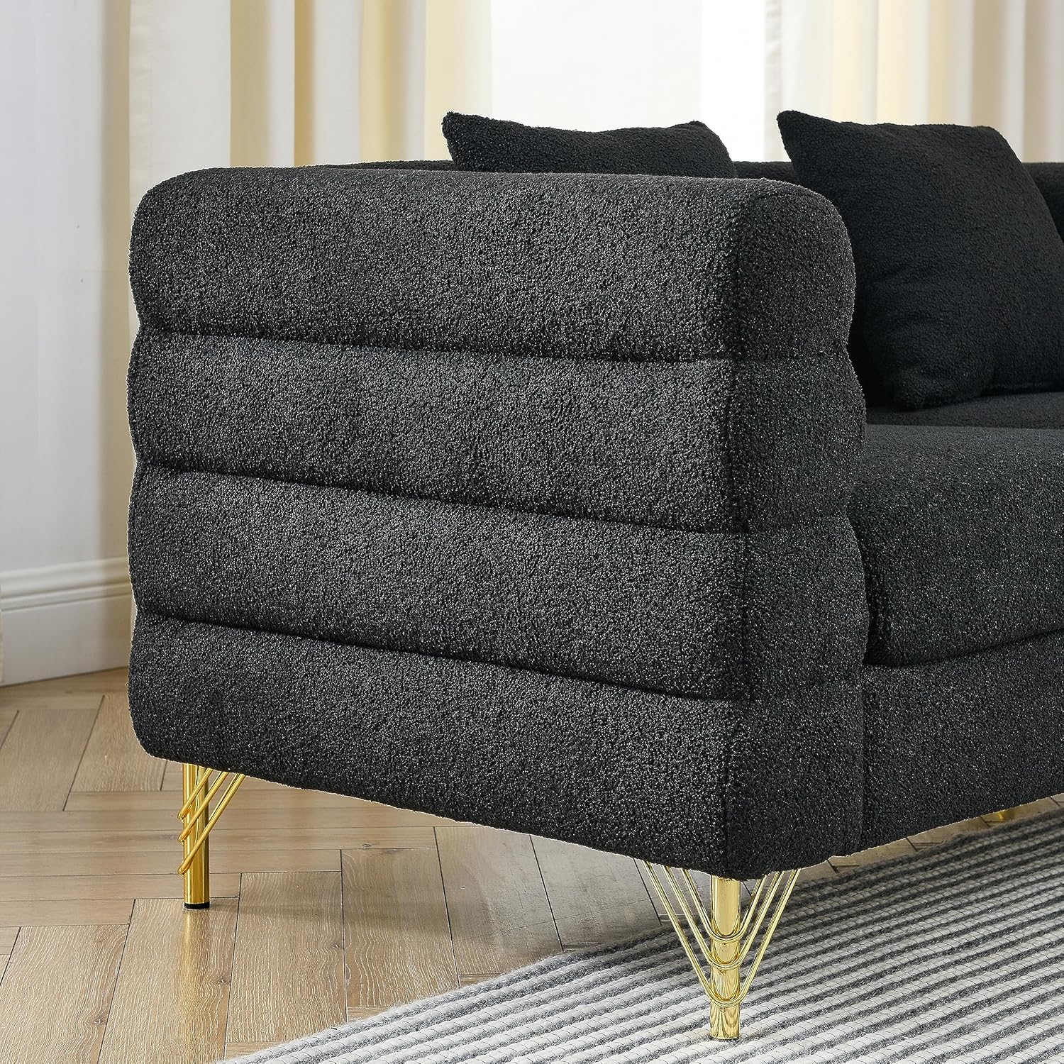 Oversized 2 Seater Sectional Sofa - Deep Seating, Comfort Fabric, and Soft Sitting - Living Room, Bedroom, Office - Black Teddy