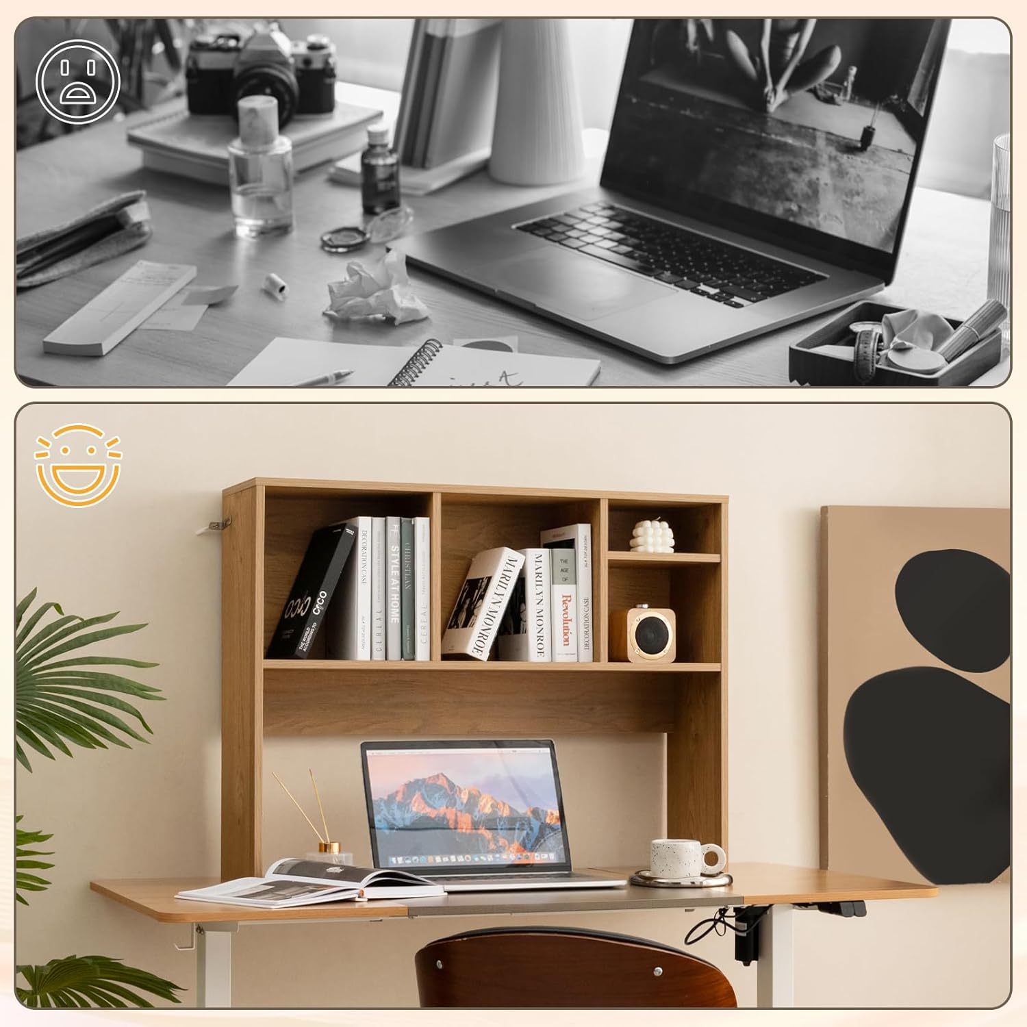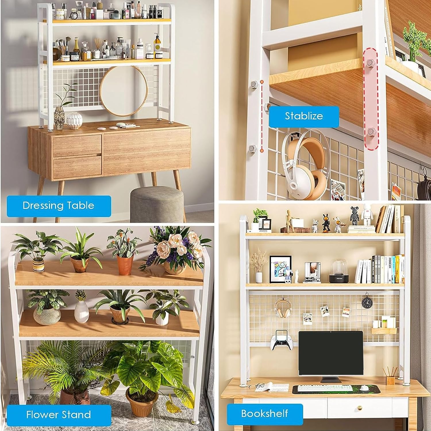 Desk Hutch, Countertop Storage Organizer with 4 Shelves, 2-Tier Display Rack for Computer Desk, Multipurpose Wood Hutch Organizer, Desktop Bookshelf for Dorm, Office, Home, Natural