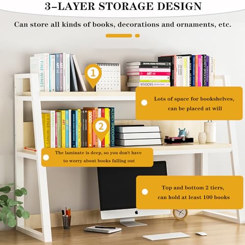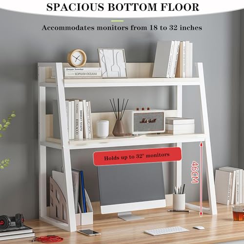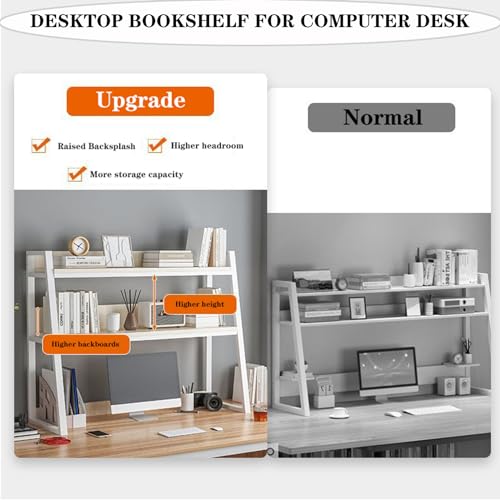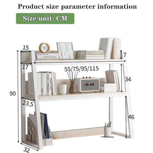 2-tier Wooden Desktop Bookshelf desktop Bookcase Book Organizer Rack For Computer Desk, Multipurpose Display Rack,countertop Storage Hutch Office Supplies Ac(Size:95x20x98cm(37x8x39inch),Color:White)