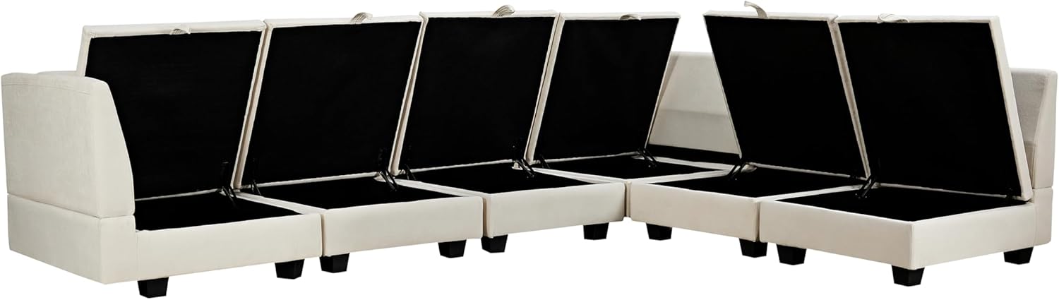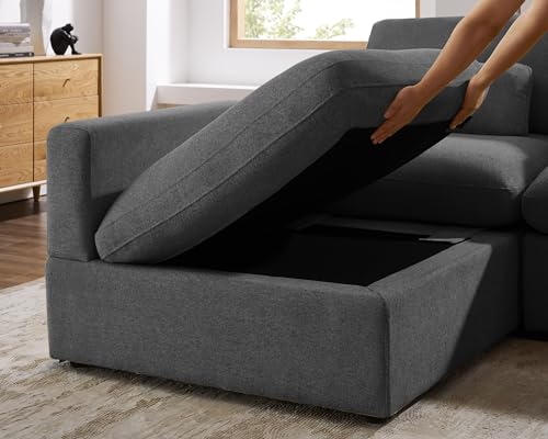 Modular Sectional Sofa Couch, Modern Linen Sleeper Sofá with Oversized Reversible Storage, Comfy & Extra Deep Seats, for Living Room, Office, Beige