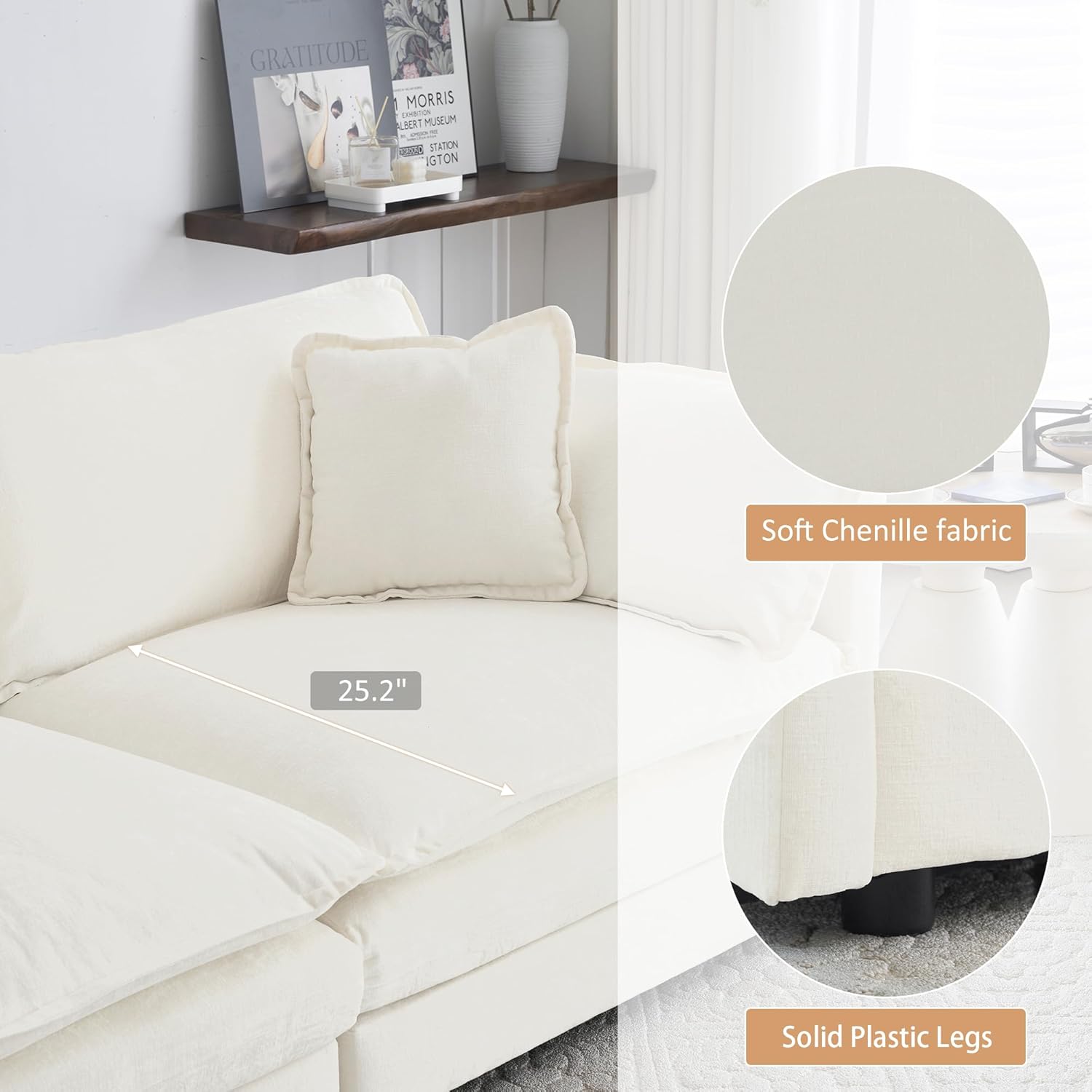 GNIXUU Oversized Modern Living Room Furniture Sets, Inclued 2 pieces loveseat sofa, Comfy Chenille Deep Seat Modular Couch Set for Living Room and Bedroom(2+2 seat, Beige White)