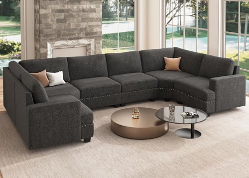 Nolany Oversized Modular Sofa U Shaped Modular Sectional Couch Reversible Modular Sectional Sofa with Deep & Wide Seat,135.6 inch,Dark Grey