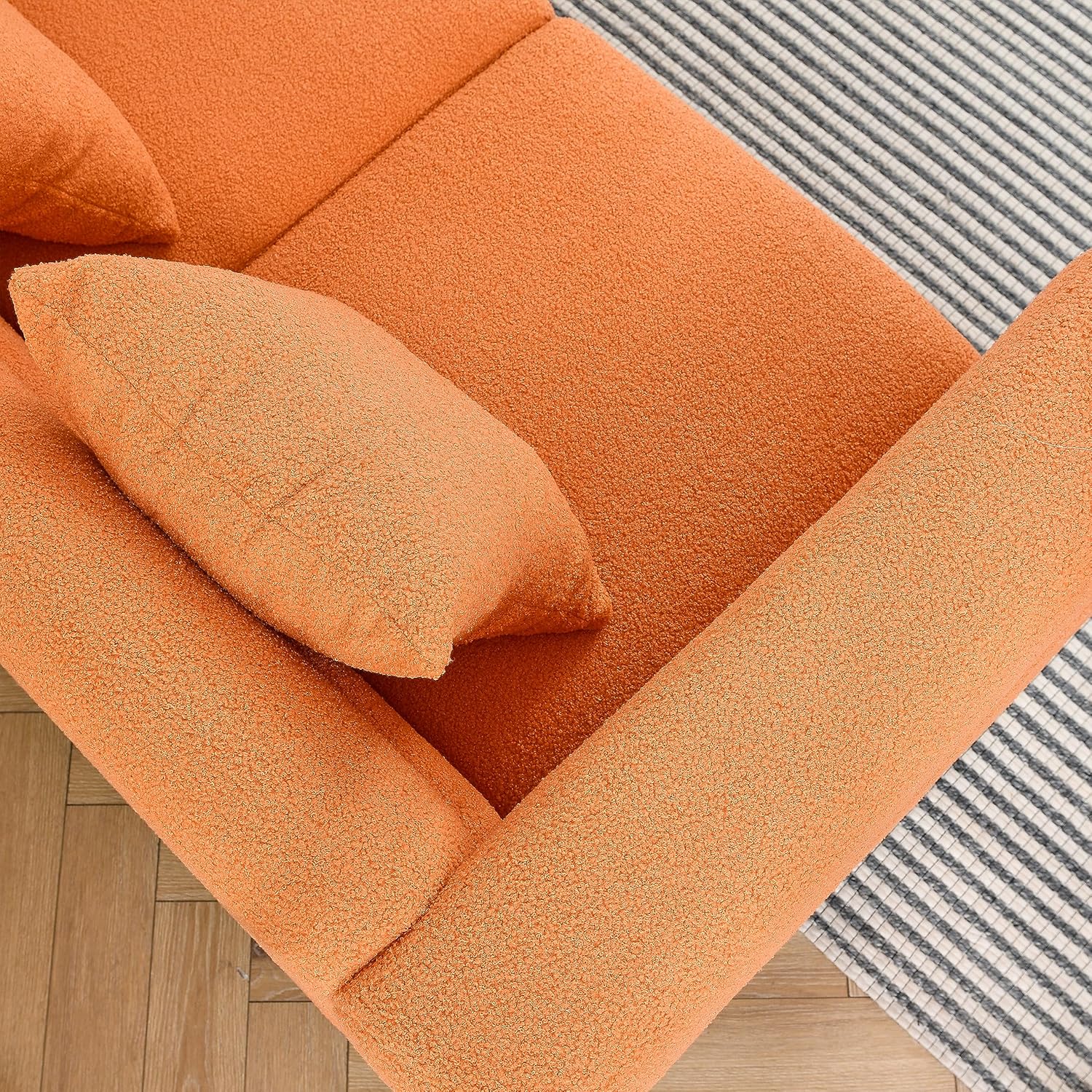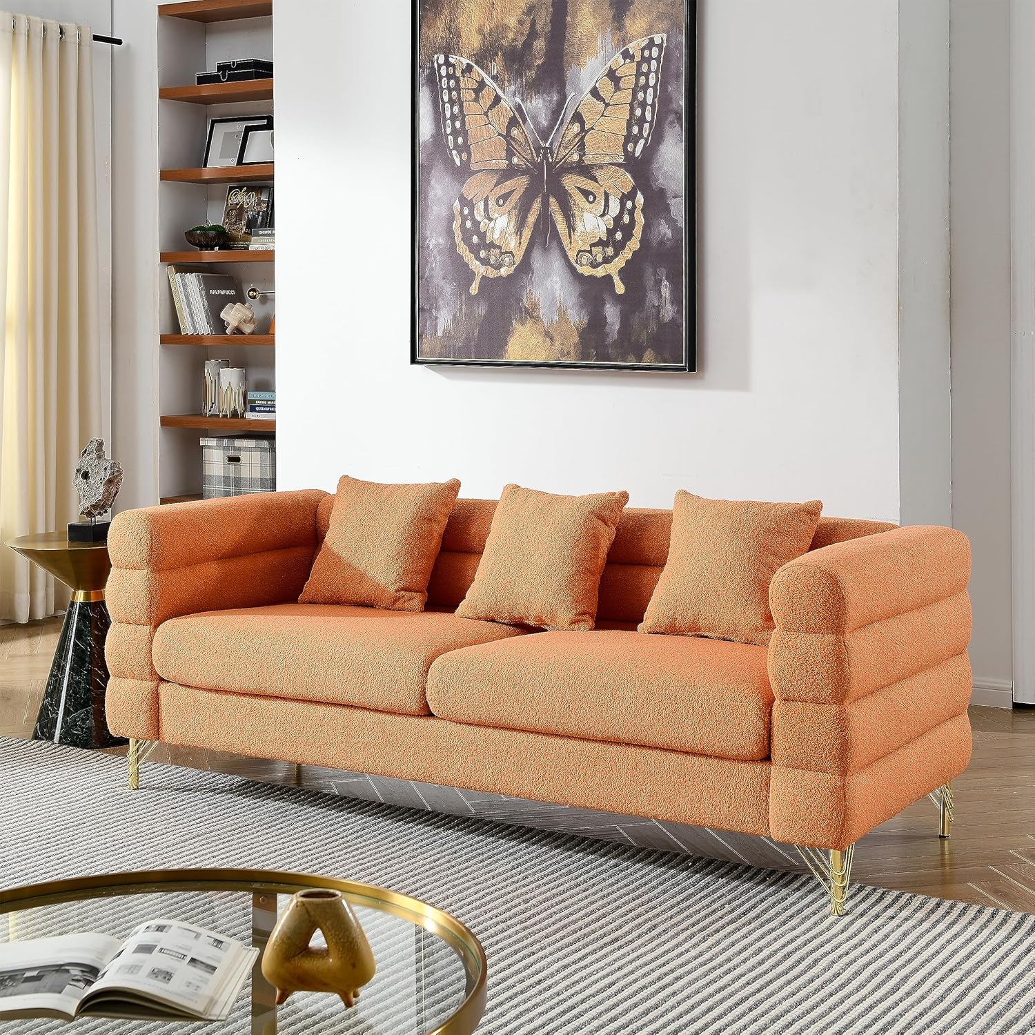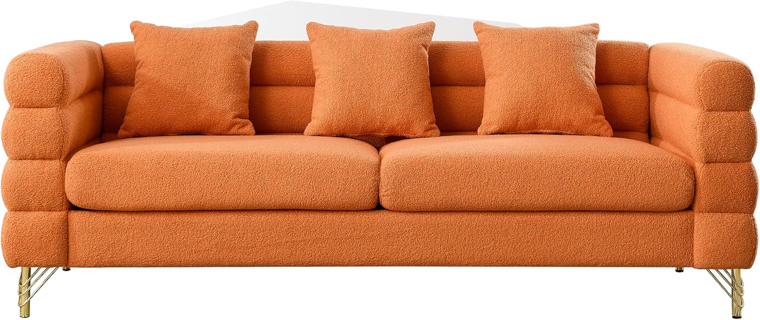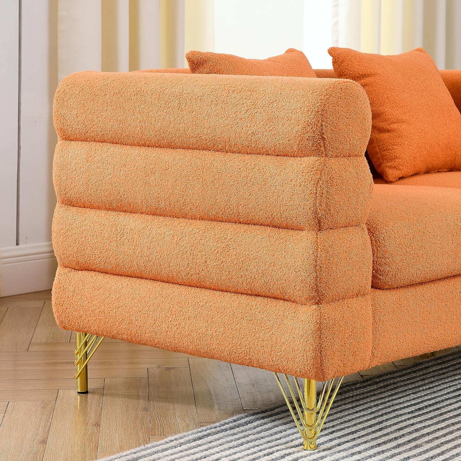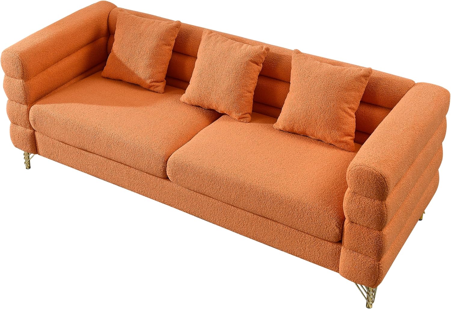 81" Oversized 3 Seater Sectional Sofa, Living Room Comfort Fabric Sectional Sofa-Deep Seating Sectional Sofa, Soft Sitting with 3 Pillows for Living Room,Bedroom,Office.,Orange Teddy