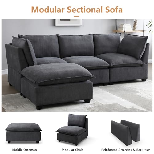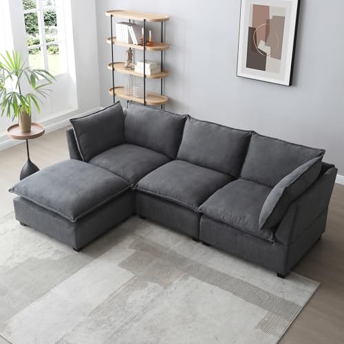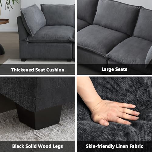 mikibama Modular Sectional Sofa, 99" L Shaped Couch Set for Living Room, 3 Seater Comfy Cloud Couches with Convertible Ottomans, Oversized Corner Sofa Bed with Deep Cushions, Linen, Blue