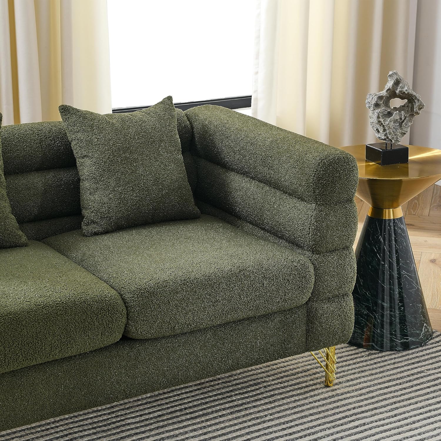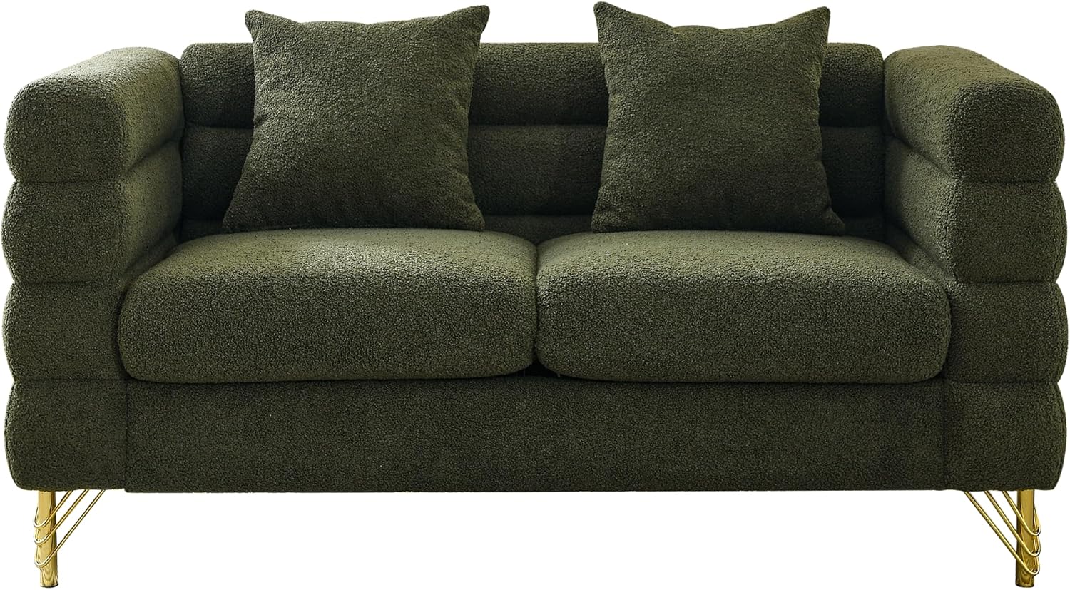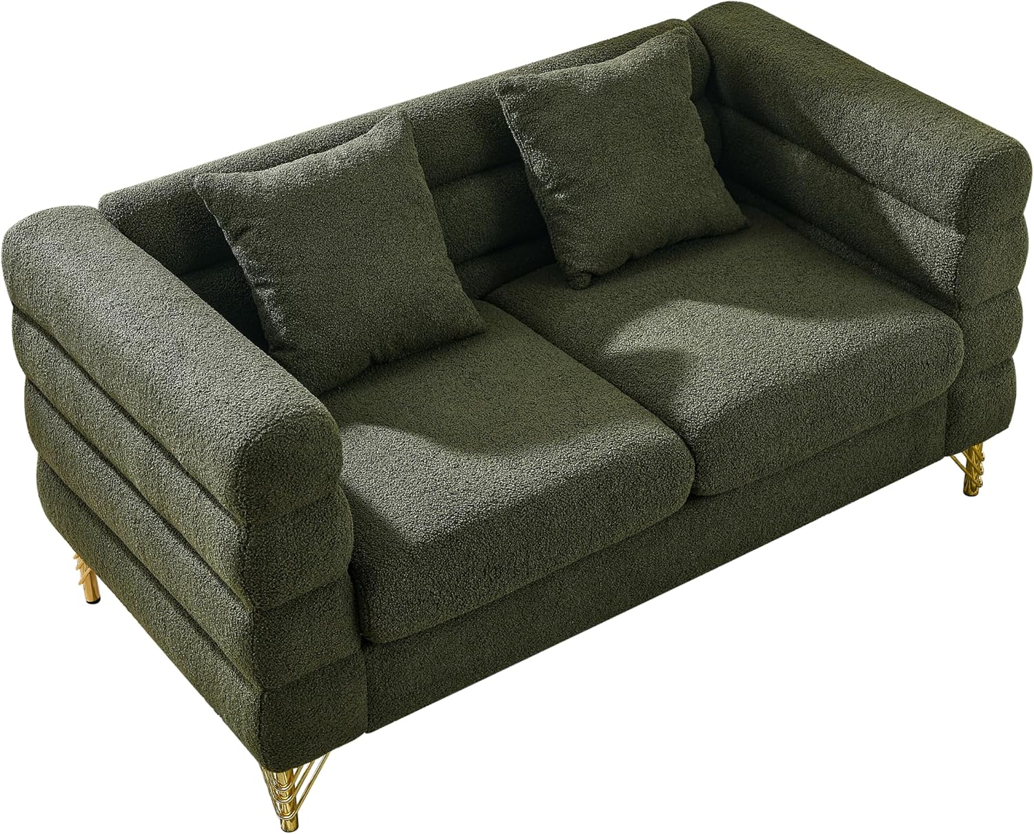 60" Oversized 2 Seater Sectional Sofa,Living Room Comfort Fabric Sectional Sofa-Deep Seating Sectional Sofa,Soft Sitting with 2 Pillows for Living Room,Bedroom,Office,Green Teddy