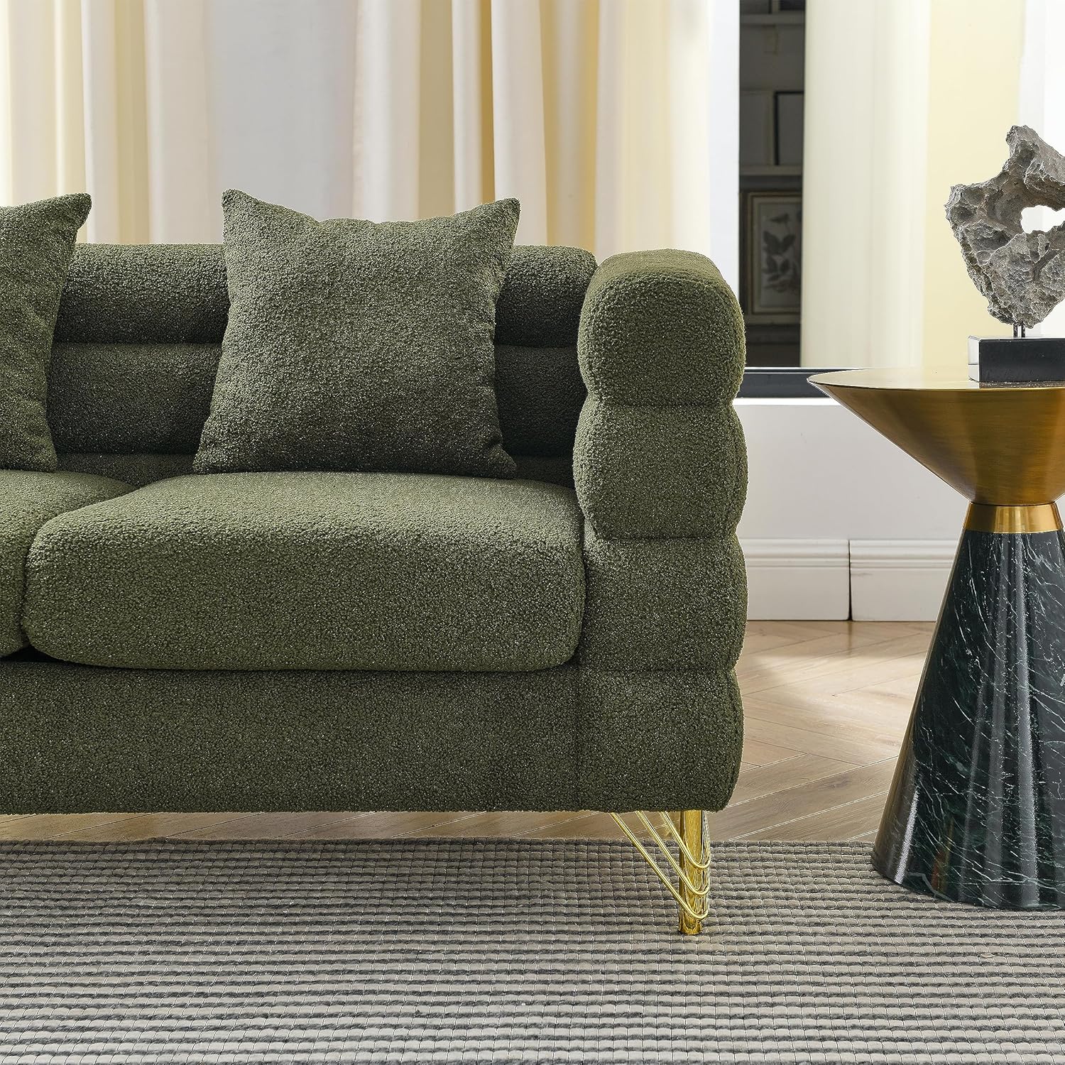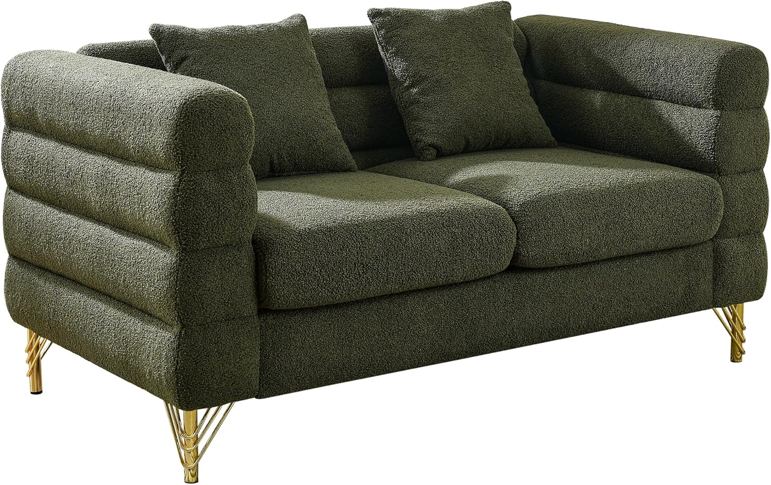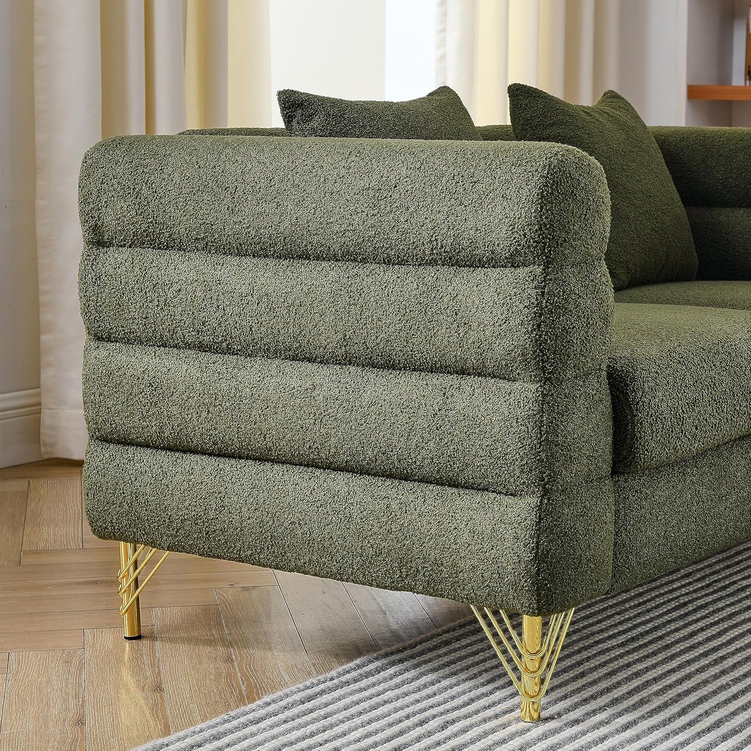 60" Oversized 2 Seater Sectional Sofa,Living Room Comfort Fabric Sectional Sofa-Deep Seating Sectional Sofa,Soft Sitting with 2 Pillows for Living Room,Bedroom,Office,Green Teddy