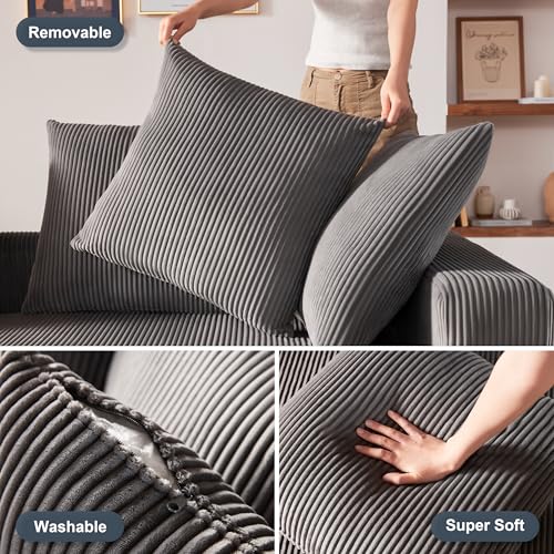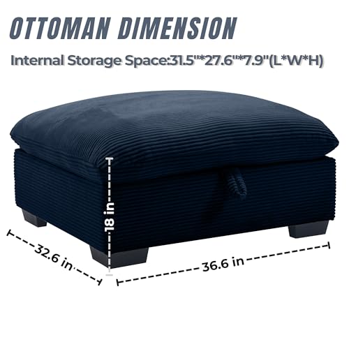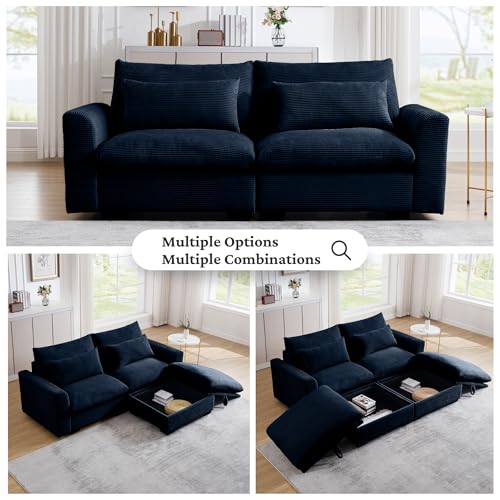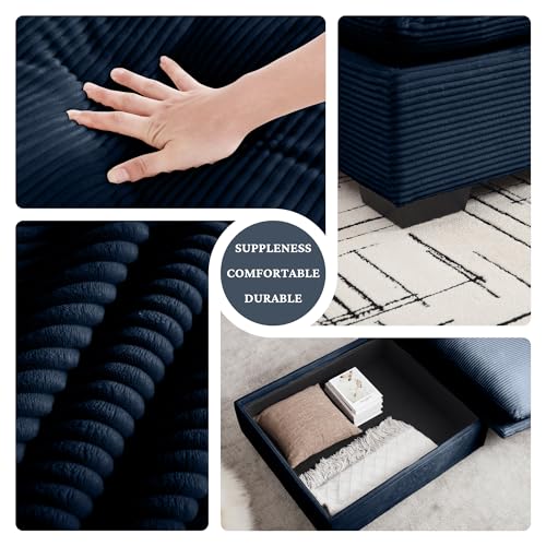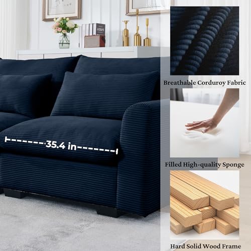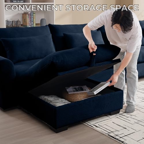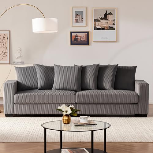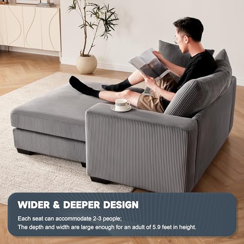 Corduroy Sofa Couch 86" Brown Comfy Couch Oversized Loveseat with Storage Ottoman Cloud Couch 3 Seater Extra Deep Sofa Couch,Sectional Couches for Living Room