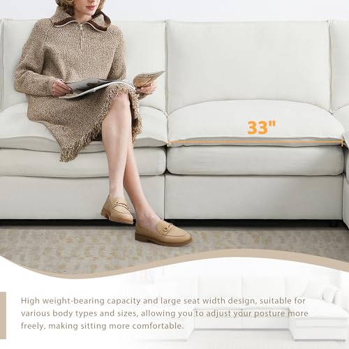 Modular Combo Oversized Sectional Sofa Couch, Modern Wide Arm Loveseat with Ottoman, Comfy Deep 2 Seat for Living Room, Bedroom, Apartment, B-Cream d