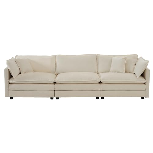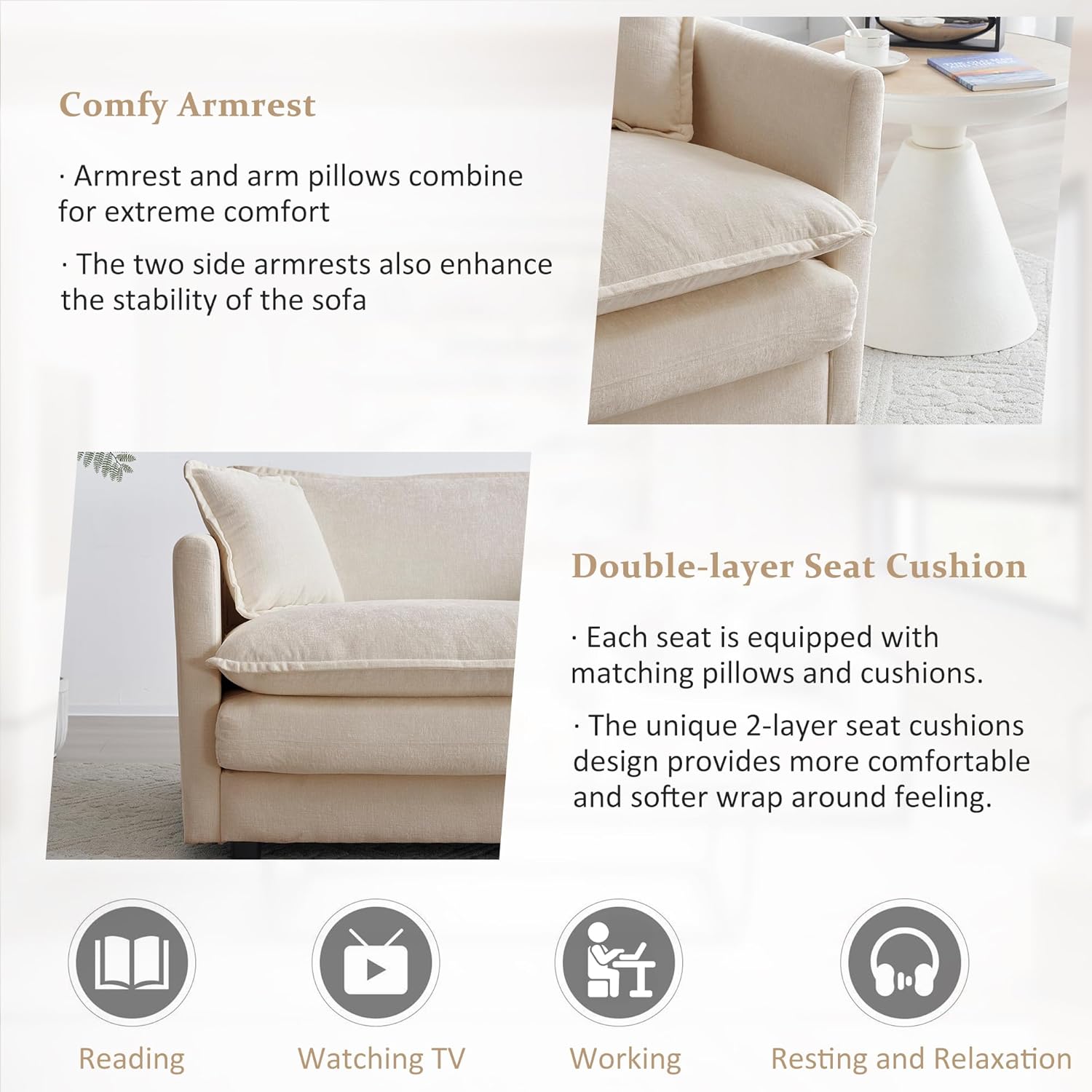 101.6" Comfy Deep Seat Loveseat for Living Room, Oversized Upholstered Modular Sectional Sofa Cloud Couch with Thickened Cushions Widened Armrests for 4 People, Beige