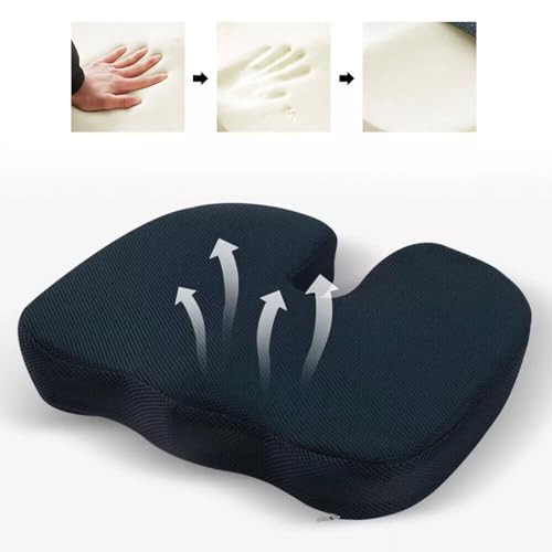 Gel Enhanced Seat Cushion, Office Chair Cushions, Car Seat Cushion, Non-Slip Gel & Memory Foam Computer Chair Pad, Coccyx Cushion Butt Pillow for Driving, Black (Grey)