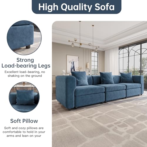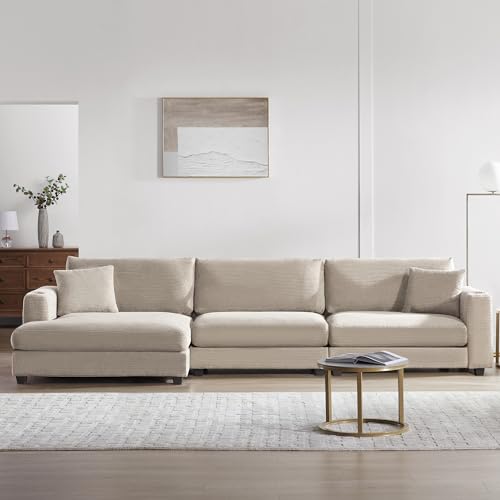 110.6'' Oversized L-Shaped Couch Sectional Sofa - Modern Comfy Deep Seat Settee Sofa 3-Seat Couch Convertible Futon Sofa with Removable Ottoman and Pillows for Living Room Apartment Office