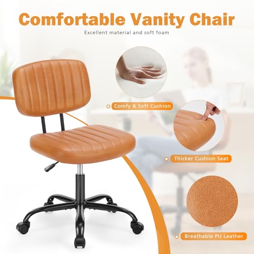Heavy Small Office Chair with U-Shaped Lumbar Support, PU Leather Gaming Chair Capacity 250 Ibs, Work Chair Without Arms Adjustable Height, 360° Swivel, and Wheels for Gaming or Work(White)