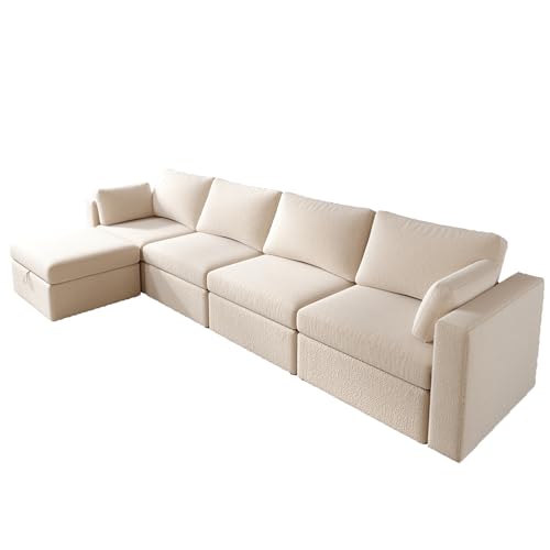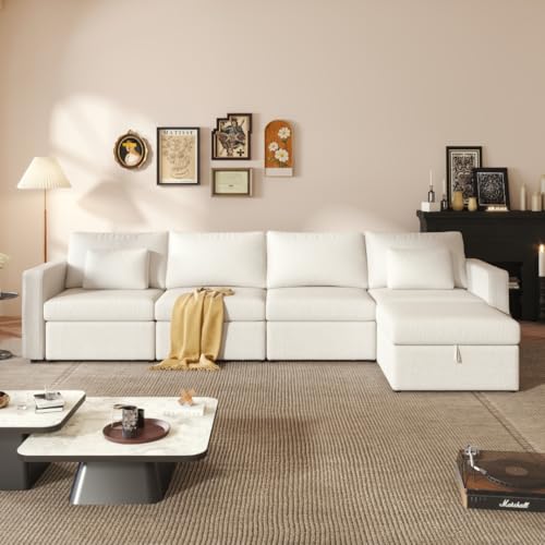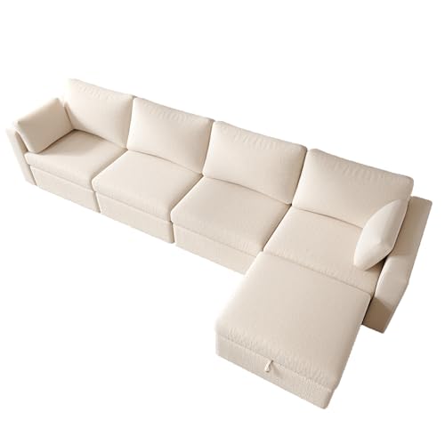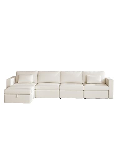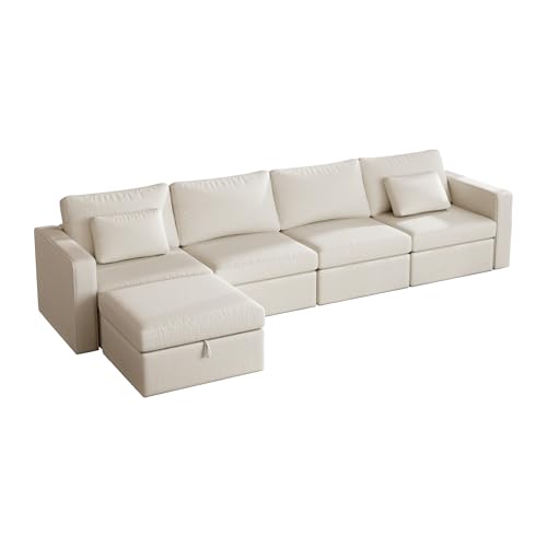 100'' Modular Sectional Sofa Modern Sectional Couch with Storage Ottoman, Comfy Oversized Deep Seat Sofa Couches for Living Room, Modern 3 Seats Convertible Sleeper Sectional Sofa, White
