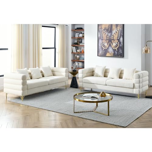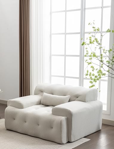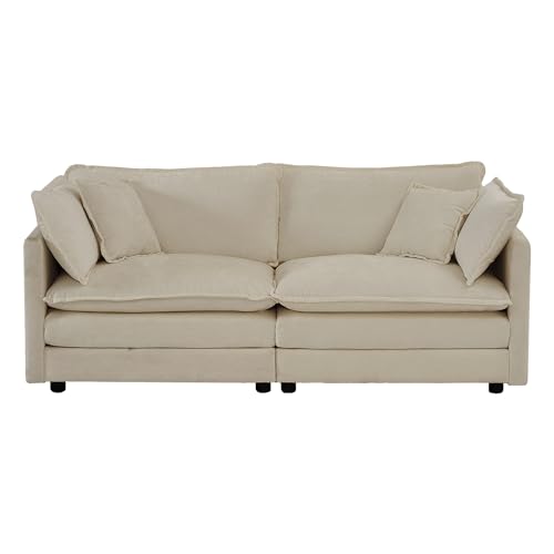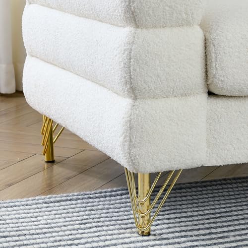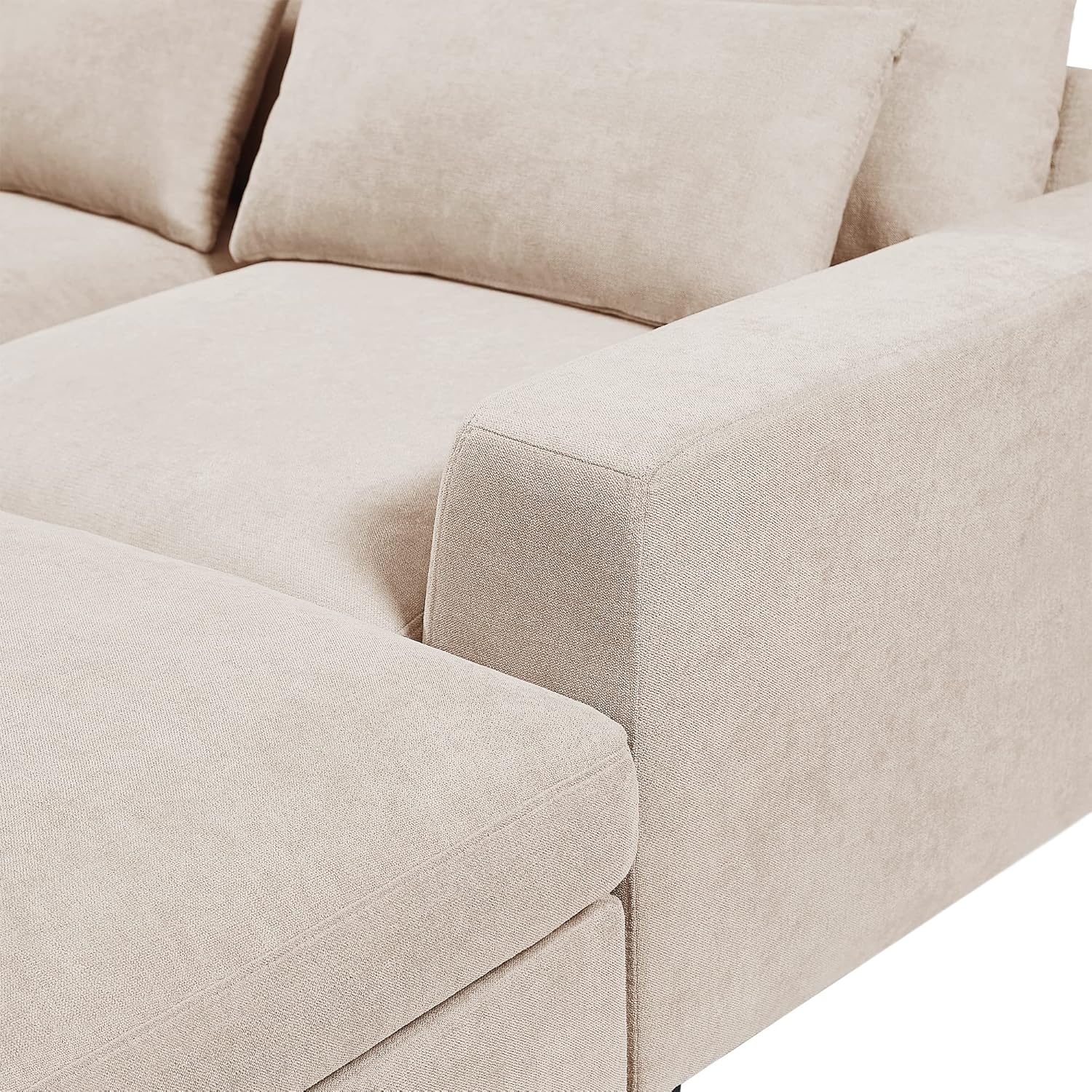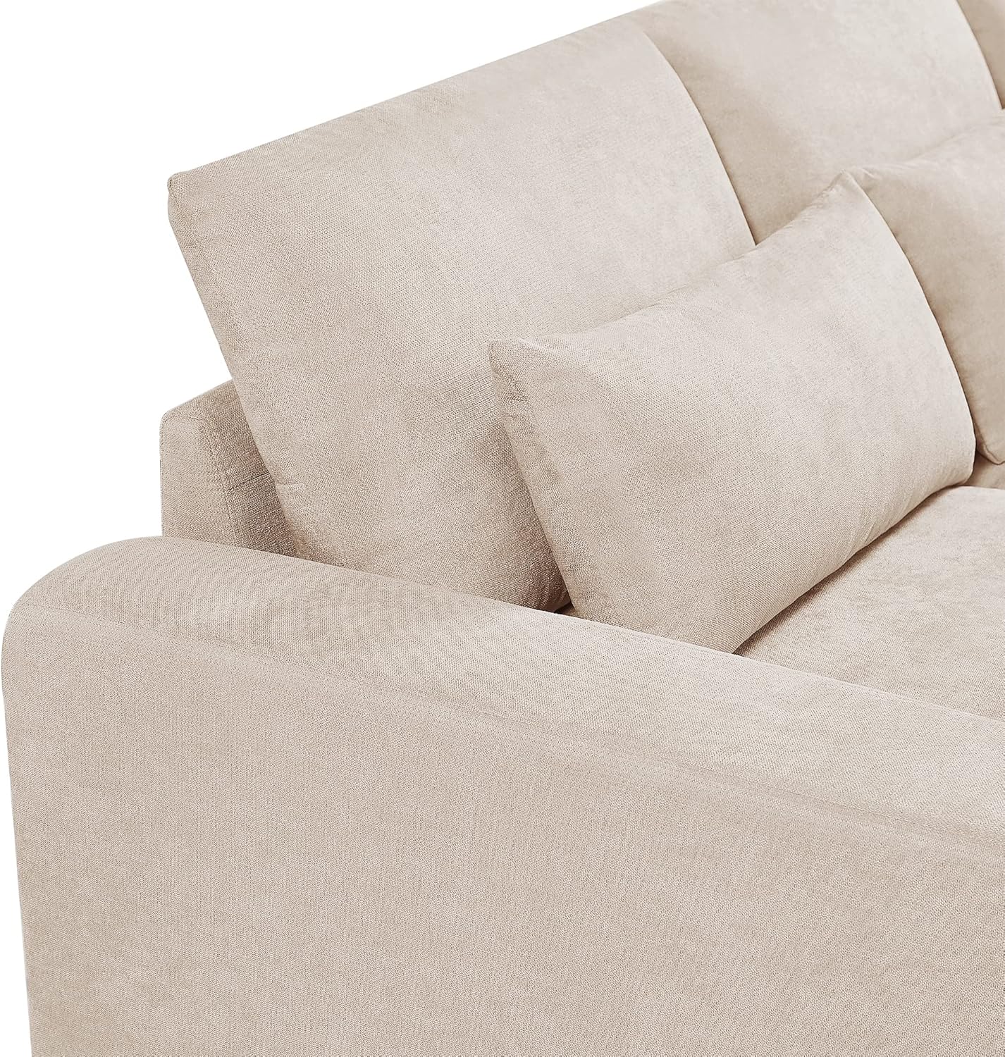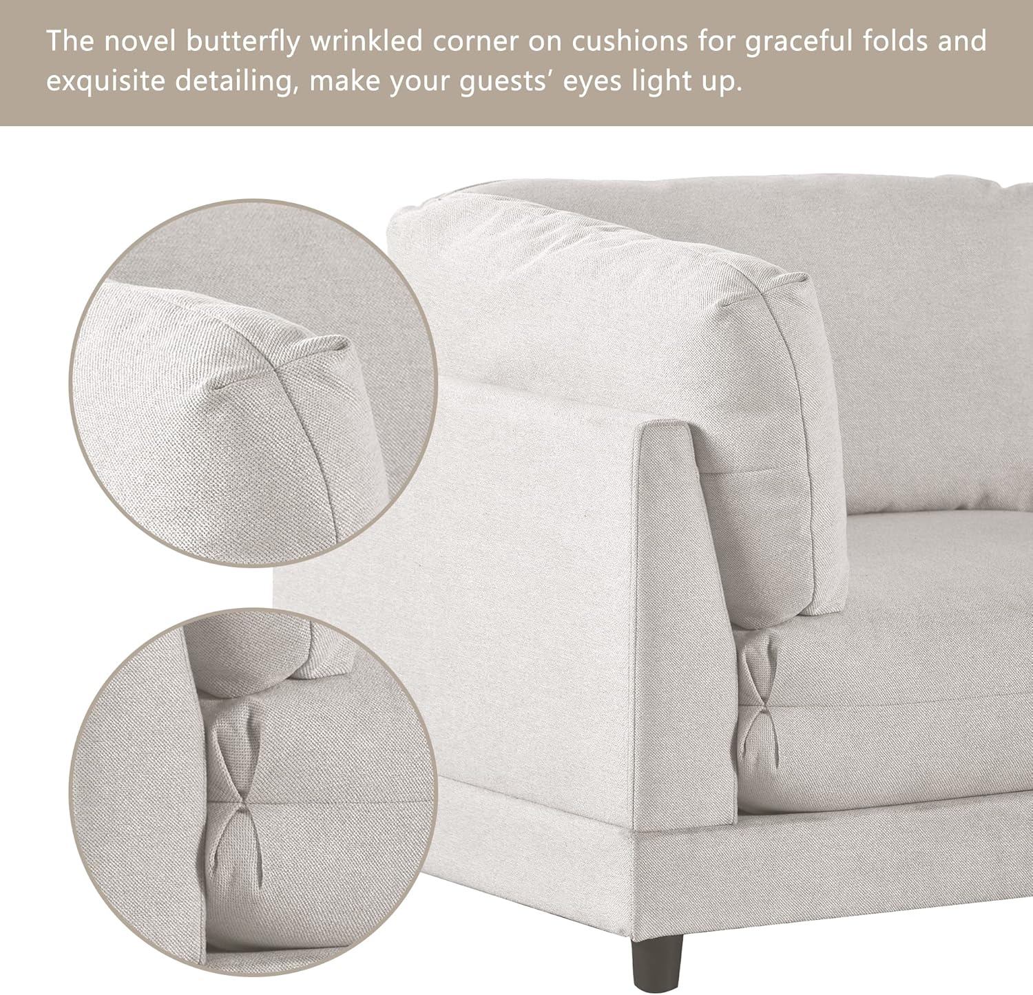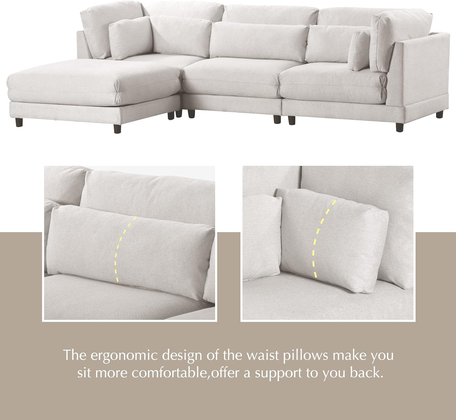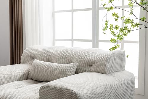 81'' Oversized 3 Seater Sectional Sofa, Living Room Comfort Fabric Sectional Sofa - Deep Seating Sectional Sofa, Soft Sitting with 3 Pillows for Living Room,Bedroom,White Teddy