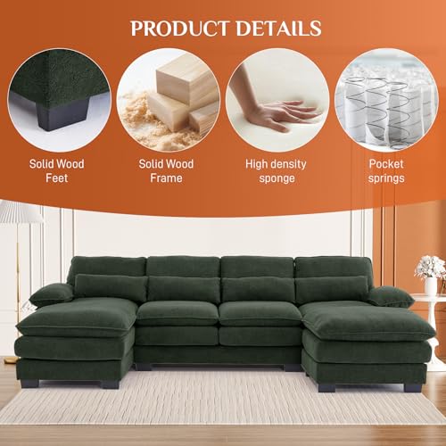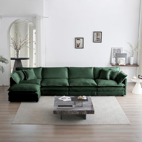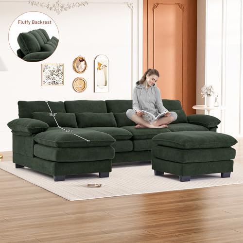 U Shaped Sectional Sofa Cloud Couch for Living Room, 114" Oversized Comfy Chenille Modular Deep Seat Sofa, Modern Large Fluffy 4-Seat Sofa with Lounge Chaise Pillows, Black