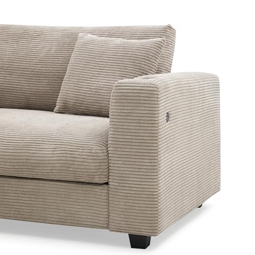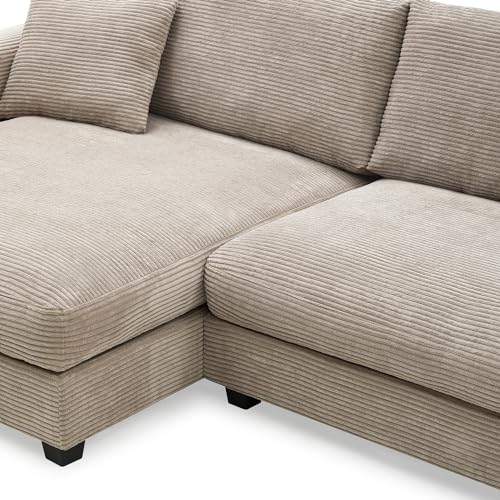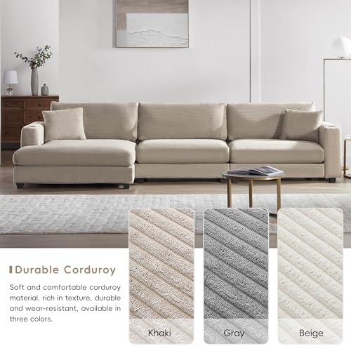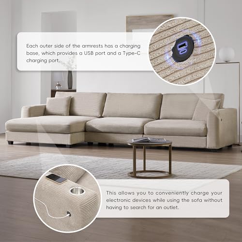 134 * 54" Oversized Corduroy Sectional Sofa,L Shaped Cloud Couch with USB Charging Port,Cup Holder,Deep Seat Sofa Bed with 50" Chaise,Comfy Indoor Furniture for Living Room,Gray
