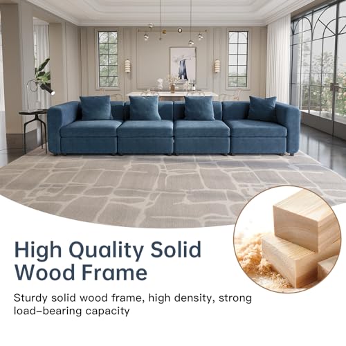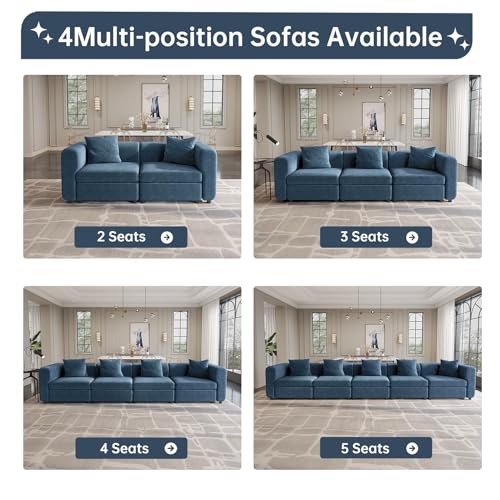 Blue Queen Sectional Sofa, Comfy Deep Seat Convertible Sofa Bed Couch, 8 Seat 150" Modern Sofa, Multifunctional Sleeper Sofa including 4 Single Sofa and 4 Chaises for Living Room, Guest Room