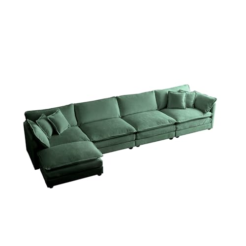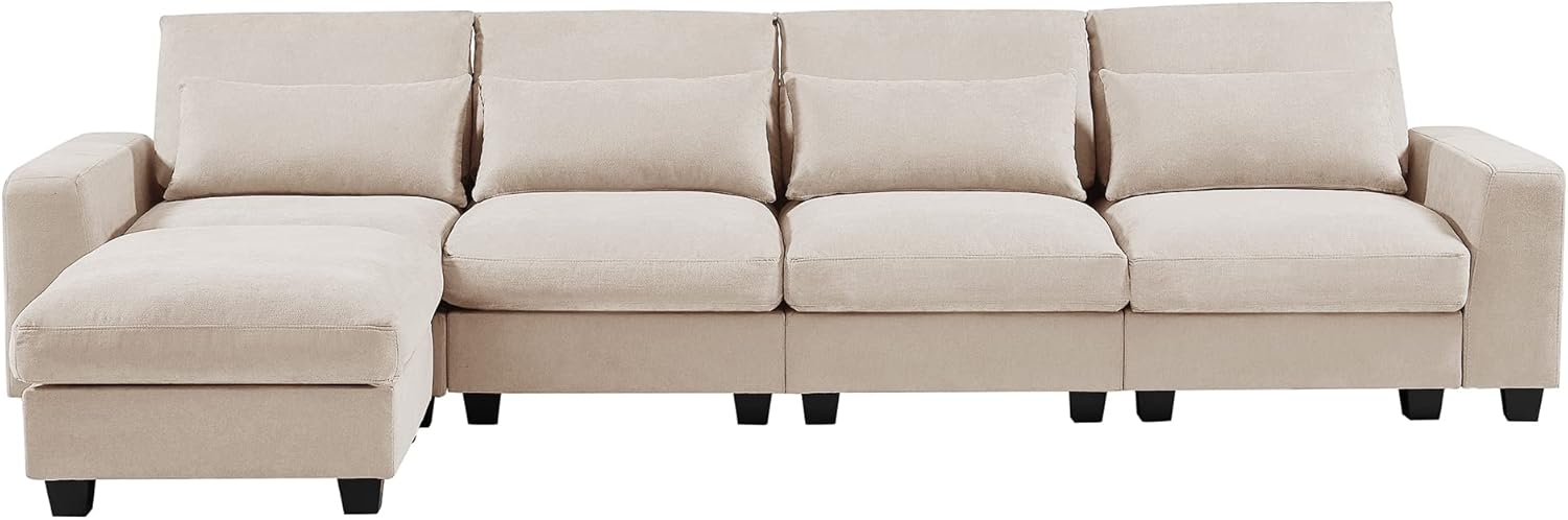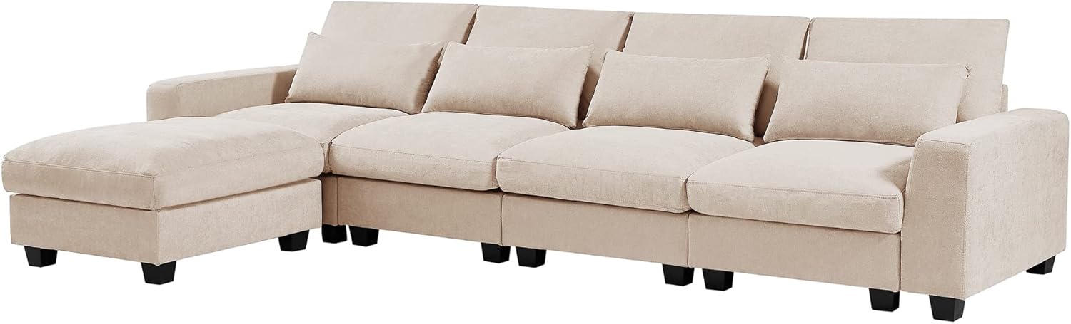 130" L-Shaped Convertible Deep Seat Feather Filled Modular Sectional Sofa with Reversible Chaise/Movable Ottoman&4 Waist Pillows,Comfy Upholstered Corner Couch,5-Seat Oversized Sofá for Living Room