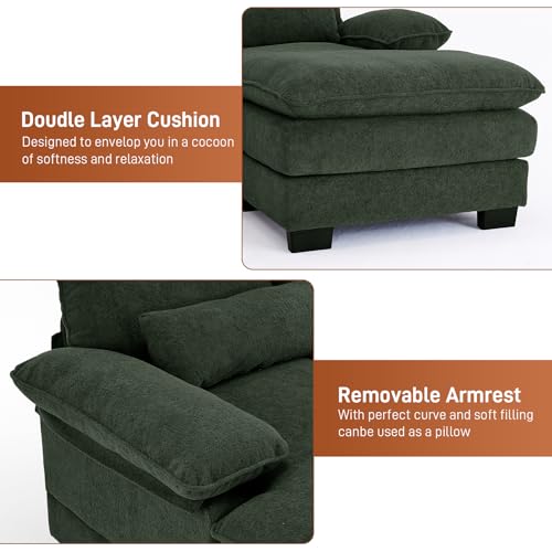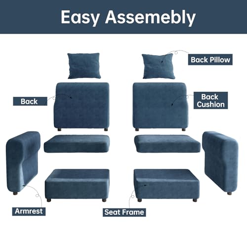Oversized Cloud Couch with 2 Ottoman, 25.52" Deep Seat Comfy Chenille Loveseat Sofa Modern Modular Sectional Couches Set Furniture Sets Living Room Bedroom juego de muebles de sala, Blue