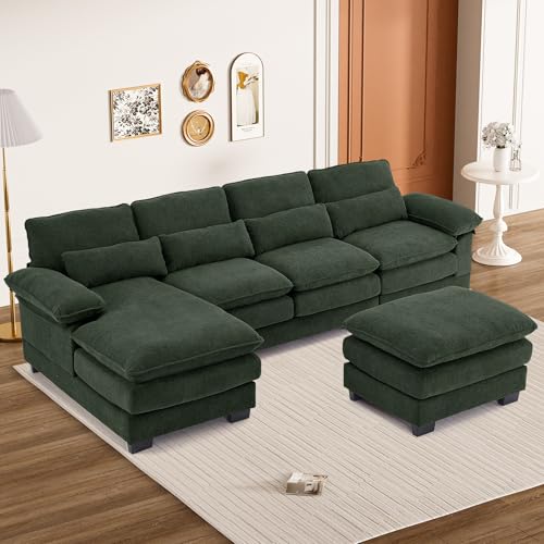 146.5" Oversized Modular Sectional Sofa, Large Deep Seat L Shaped Chenille Cloud Couches Set with Convertible Ottoman for Living Room Apartment Office (Blue)
