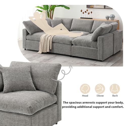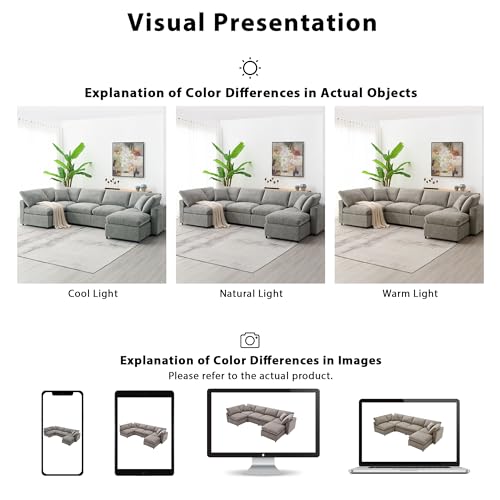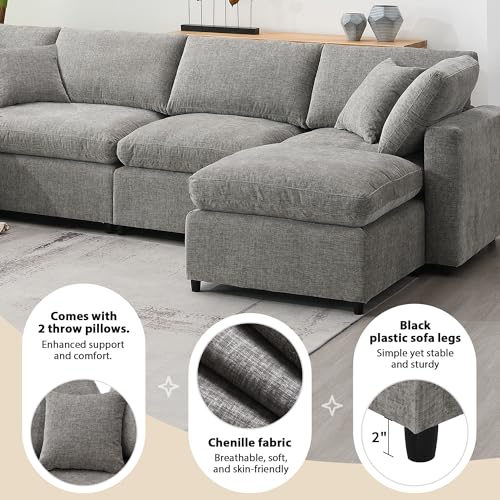 130'' U Shaped Sectional Sofa Couch, Modular Cloud Couch with Ottoman, Oversized 6 Seat Chenille Sofa Sleeper Deep Sofa Set, Comfy Upholstered Couches for Living Room Furniture, Blue