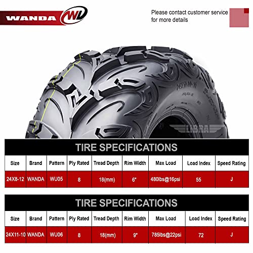 WANDA Set 4 Premium 8PR ATV UTV Tires 24X8-12 24x8x12 Front & 24x10-12 24x10x12 Rear