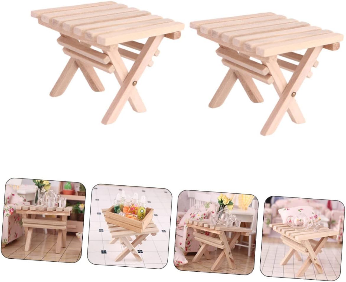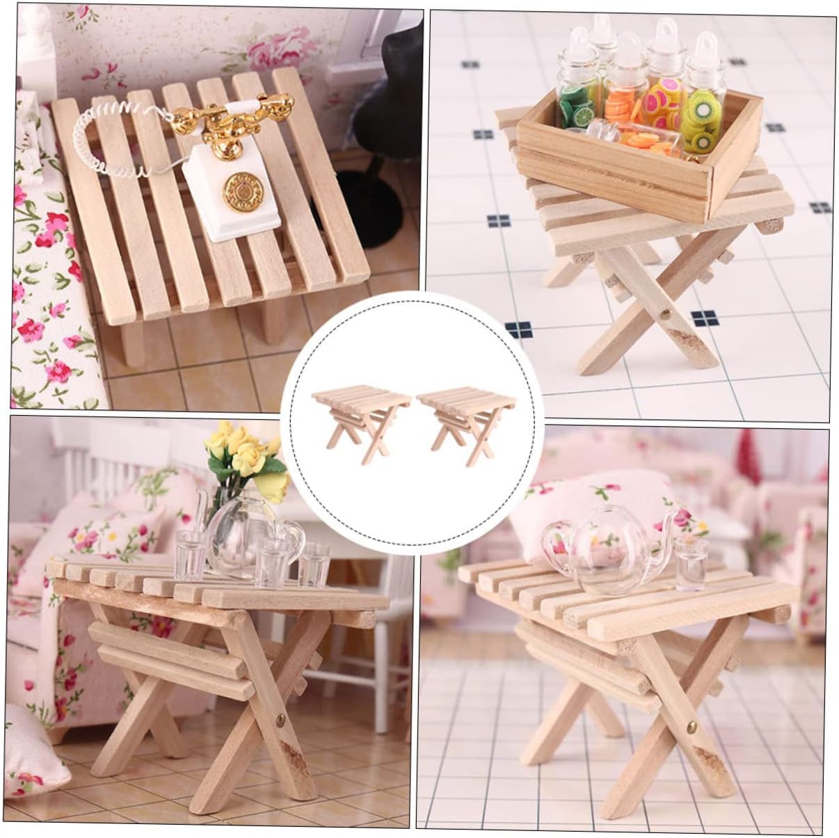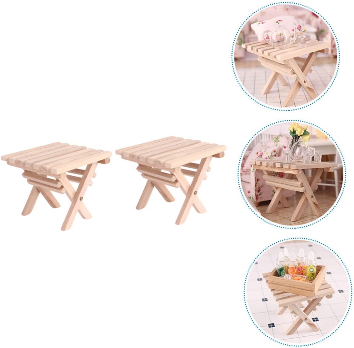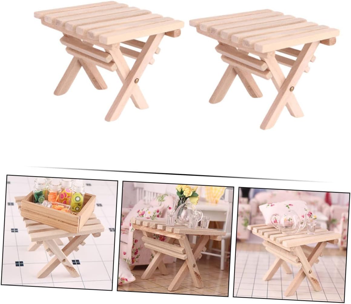 2pcs Shiwan Folding Table Furniture Small Folding Picnic Table Small Folding Tables Accessories Foldable Mini Table Coffee Table Desk Dining Table and Chairs Wooden Miniature Ob11